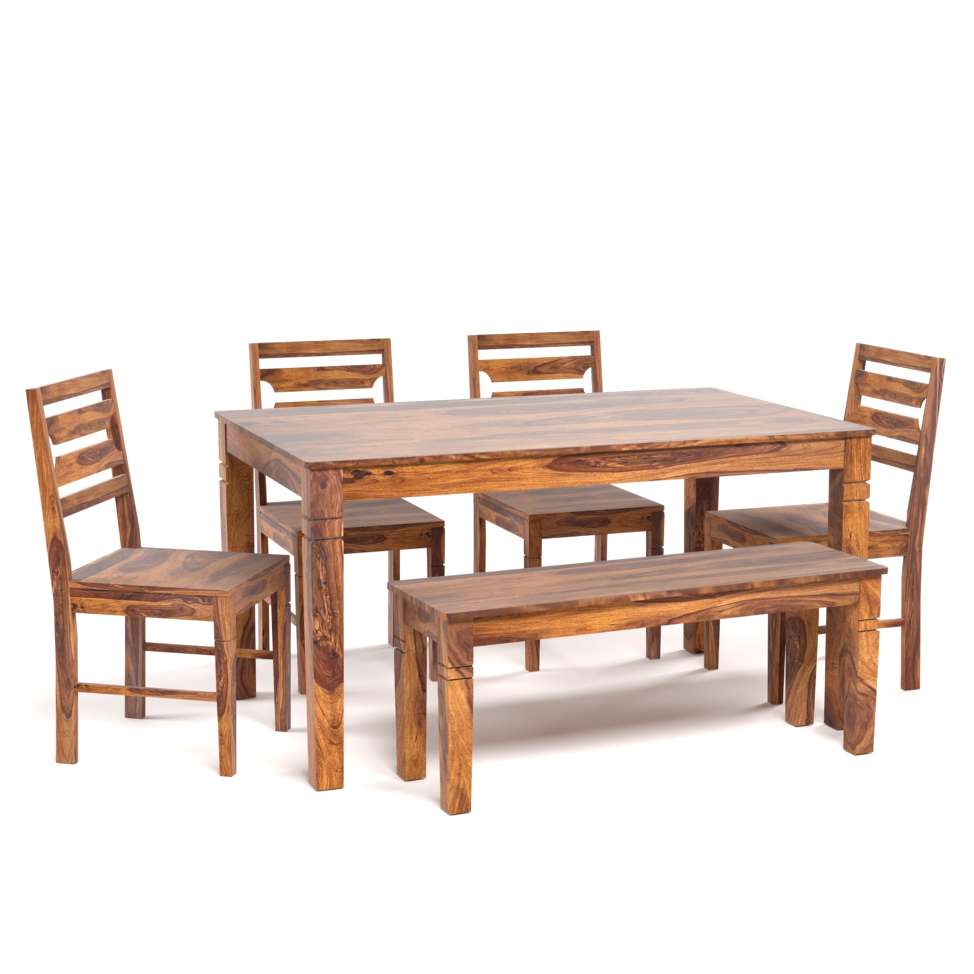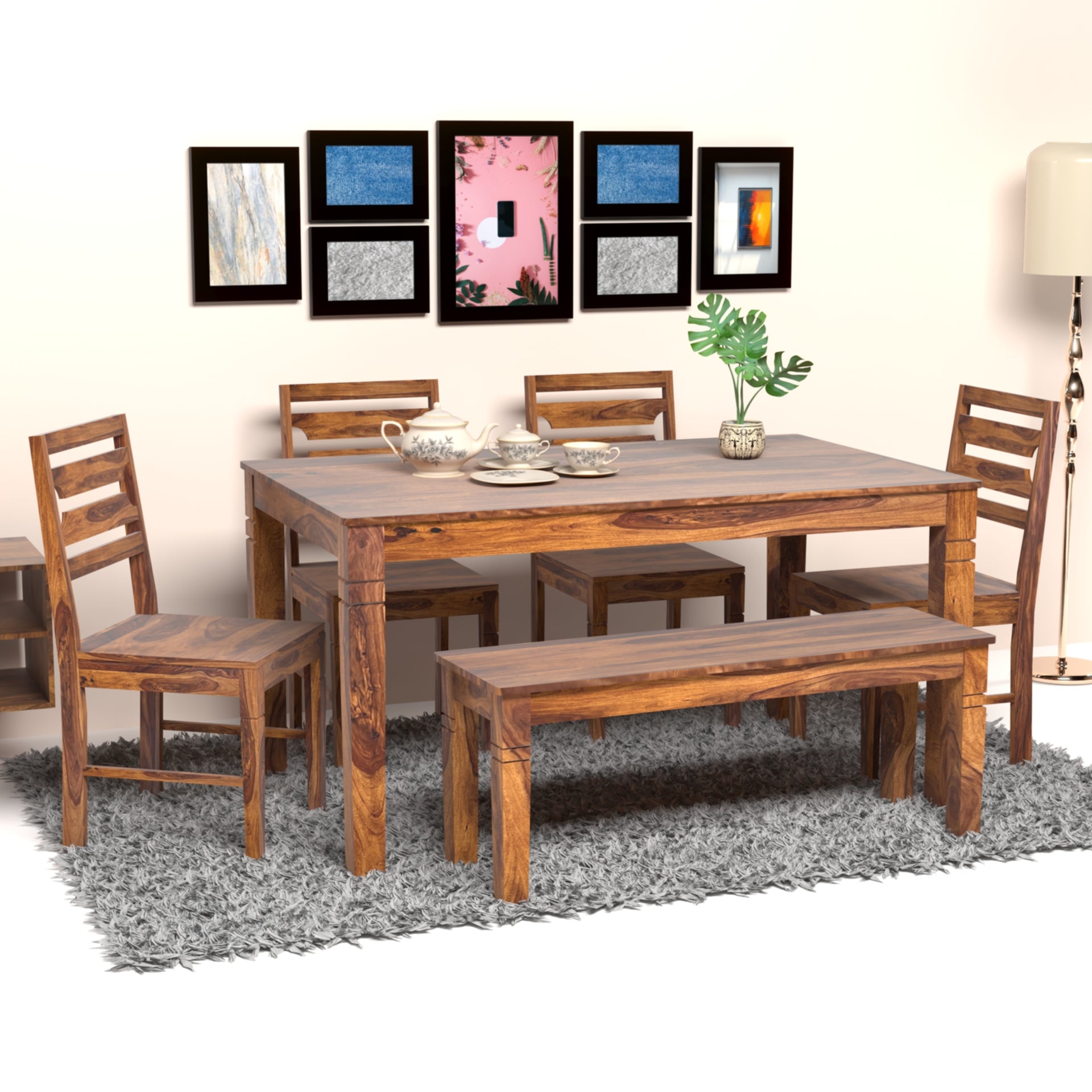 Prados Sheesham Wood Six Seater Dining Set with Bench in Honey Finish