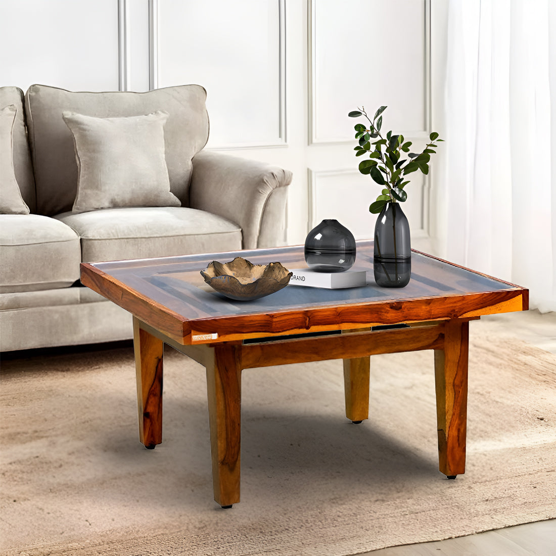 Medan Sheesham Wood Coffee Table has 8mm tempered glass table top which is pretty thick durable. This table can be used in lounge area, living-cubicle, waiting lobby, reception area etc. Because of its spacious table top you can enjoy a delightful tea time with your family or entertain friends with refreshment at home with ease. It is crafted from chemically treated & kiln dried solid sheesham wood & hence, it blessed with high quality, tensile strength & durability. Sheesham wood is exceptionally more durable than most of other wood types.