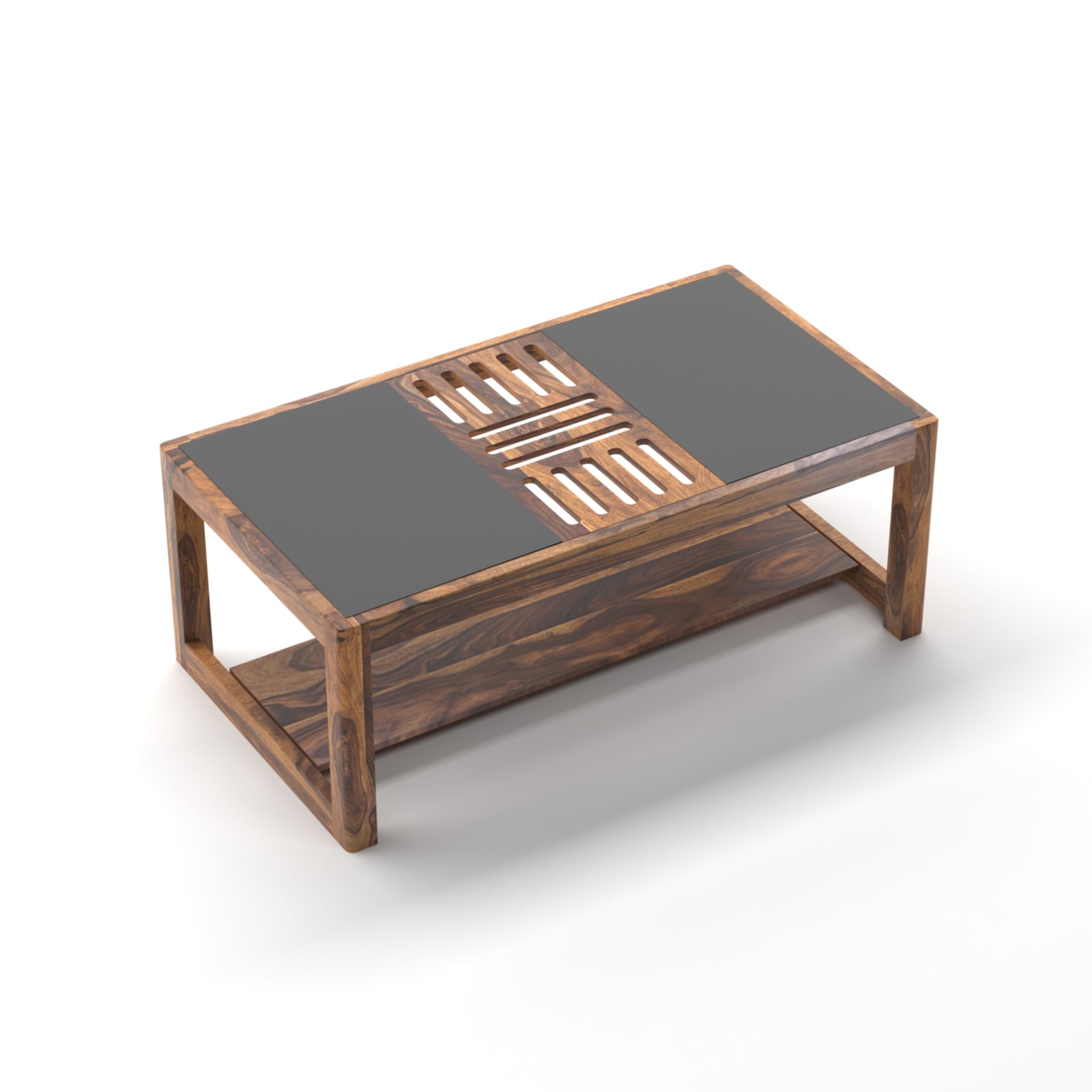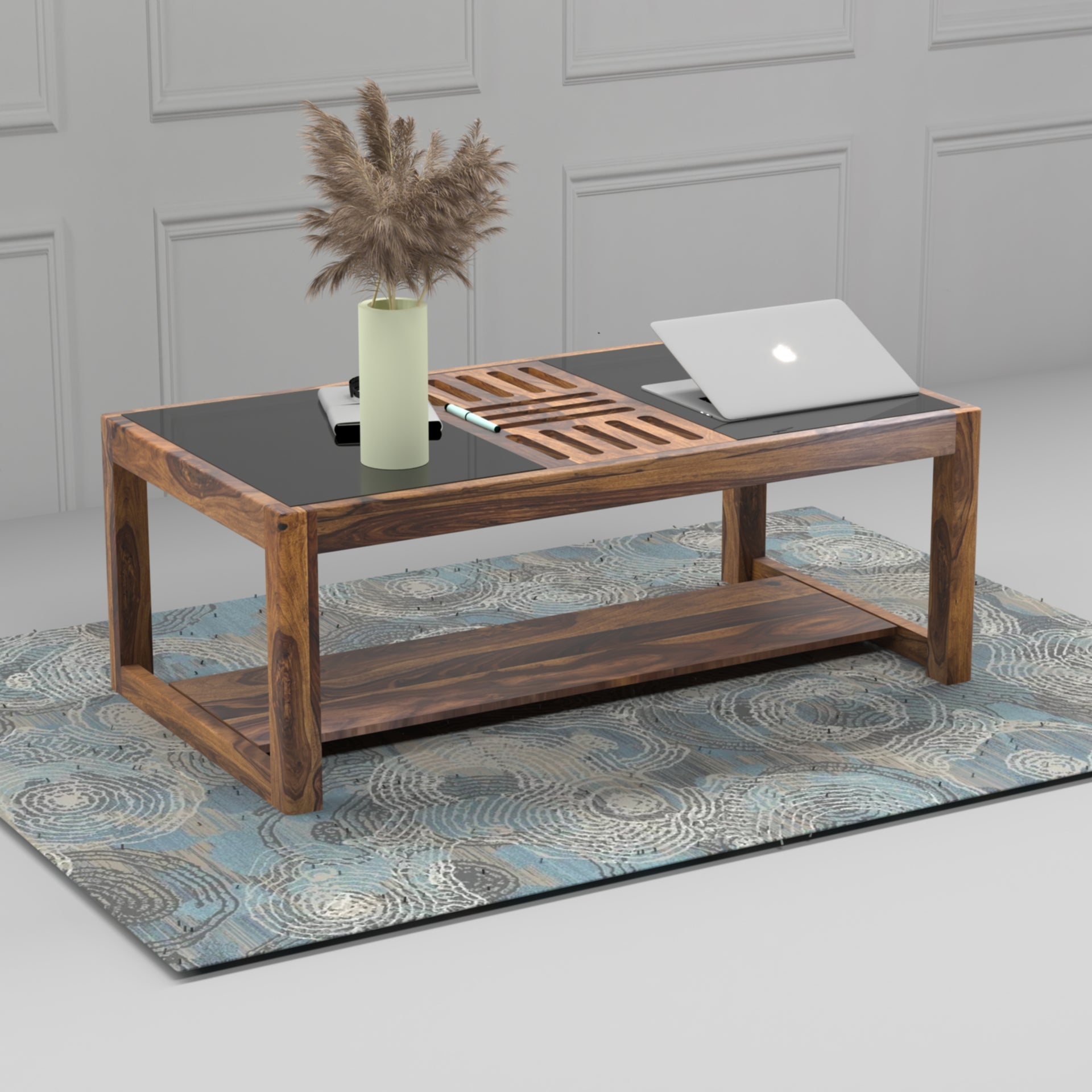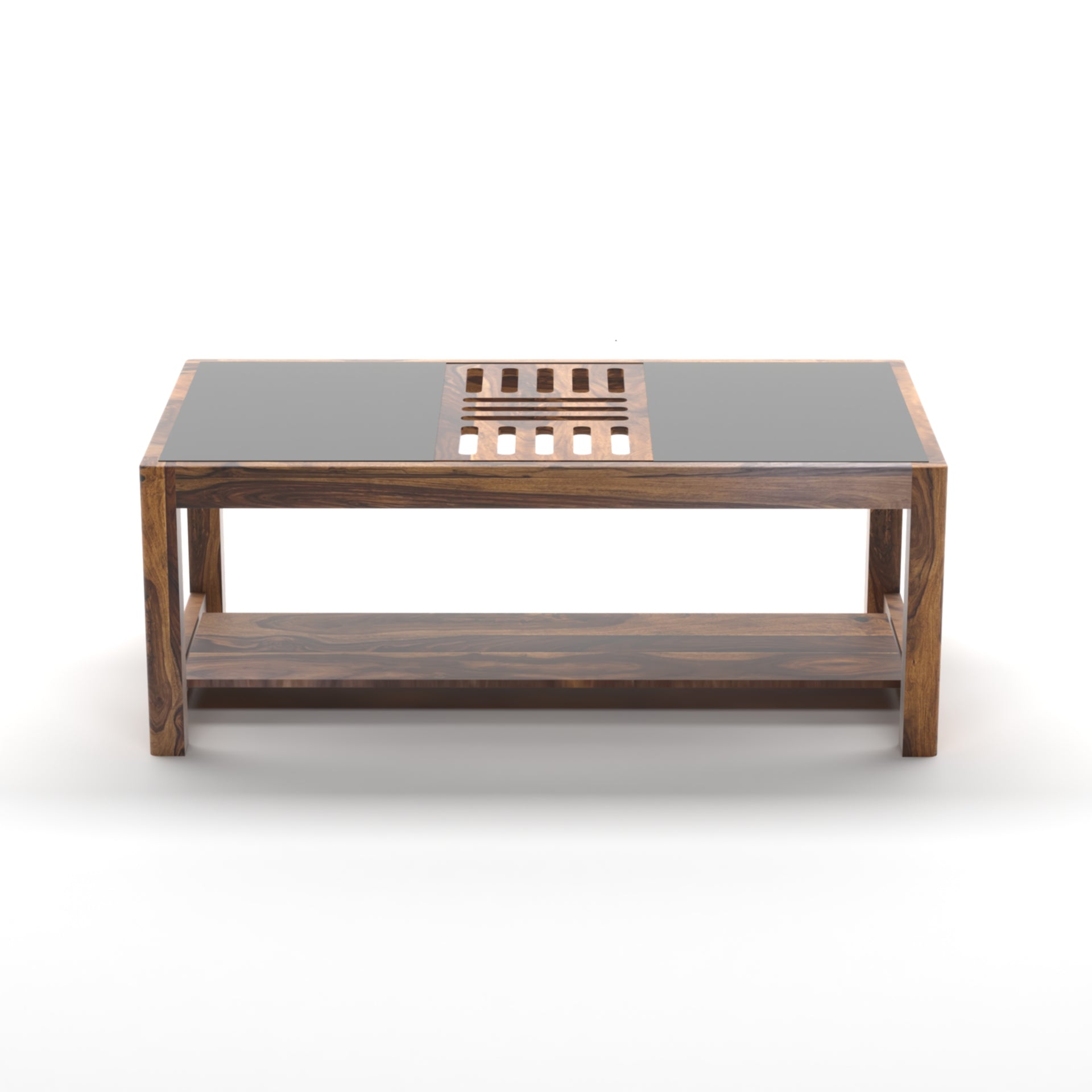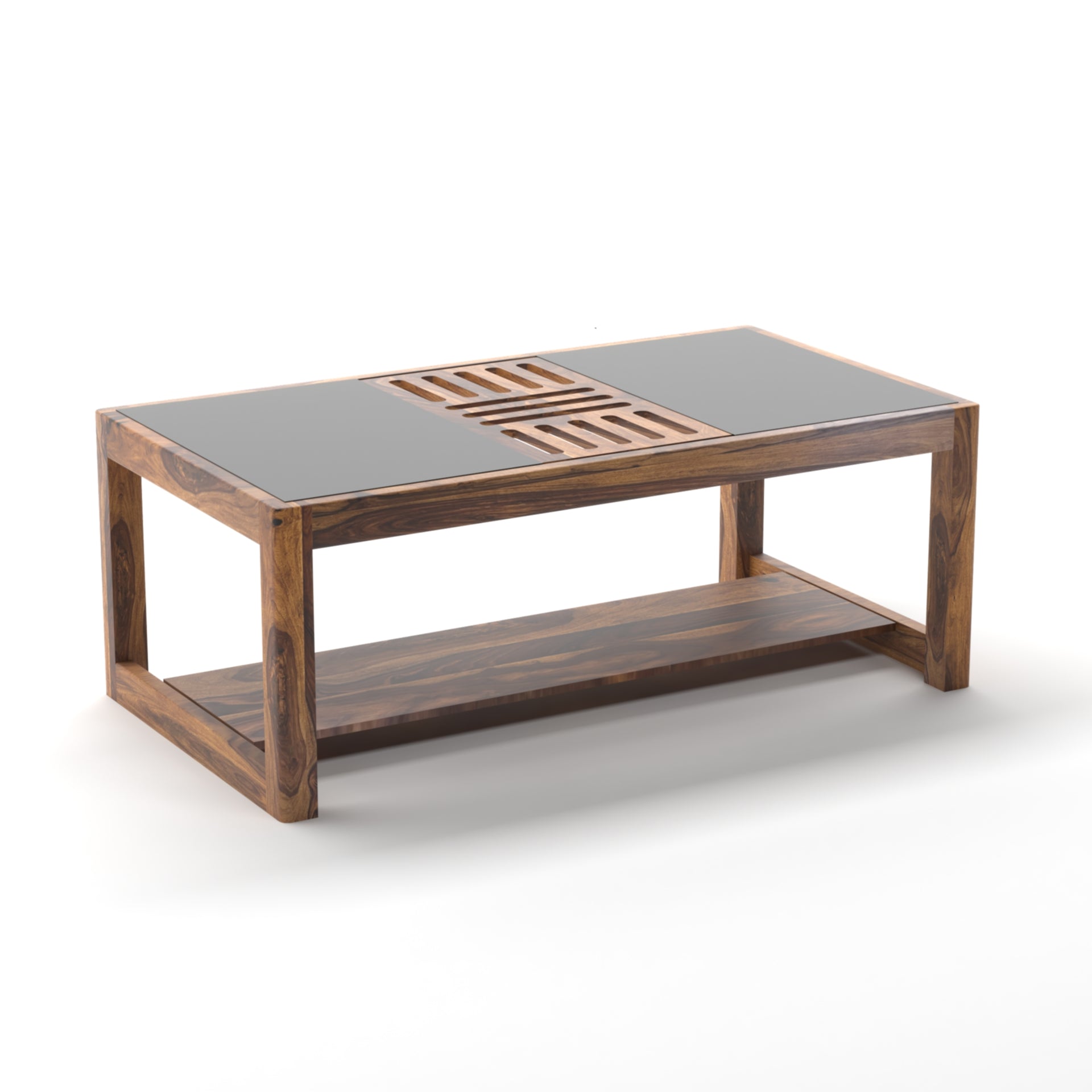 Toronto Sheesham Wood Rectangular Coffee Table can used in living-cubicle, lounge, waiting area, reception area and etc. The tabletop is created in a different way it has two 8mm tempered glass and 32cm wide plank in middle, which gives appealing look. Its rectangular table top is homespun, which provides a stable & secure surface on which you can place your drinks, vases, fruit bowls or etc. The spacious area underneath the tabletop can be used to keep newspaper, magazines, routine essentials things with ease. We used sheesham solid wood to craft this lovely table & also the wood was kiln dried before it is utilized.