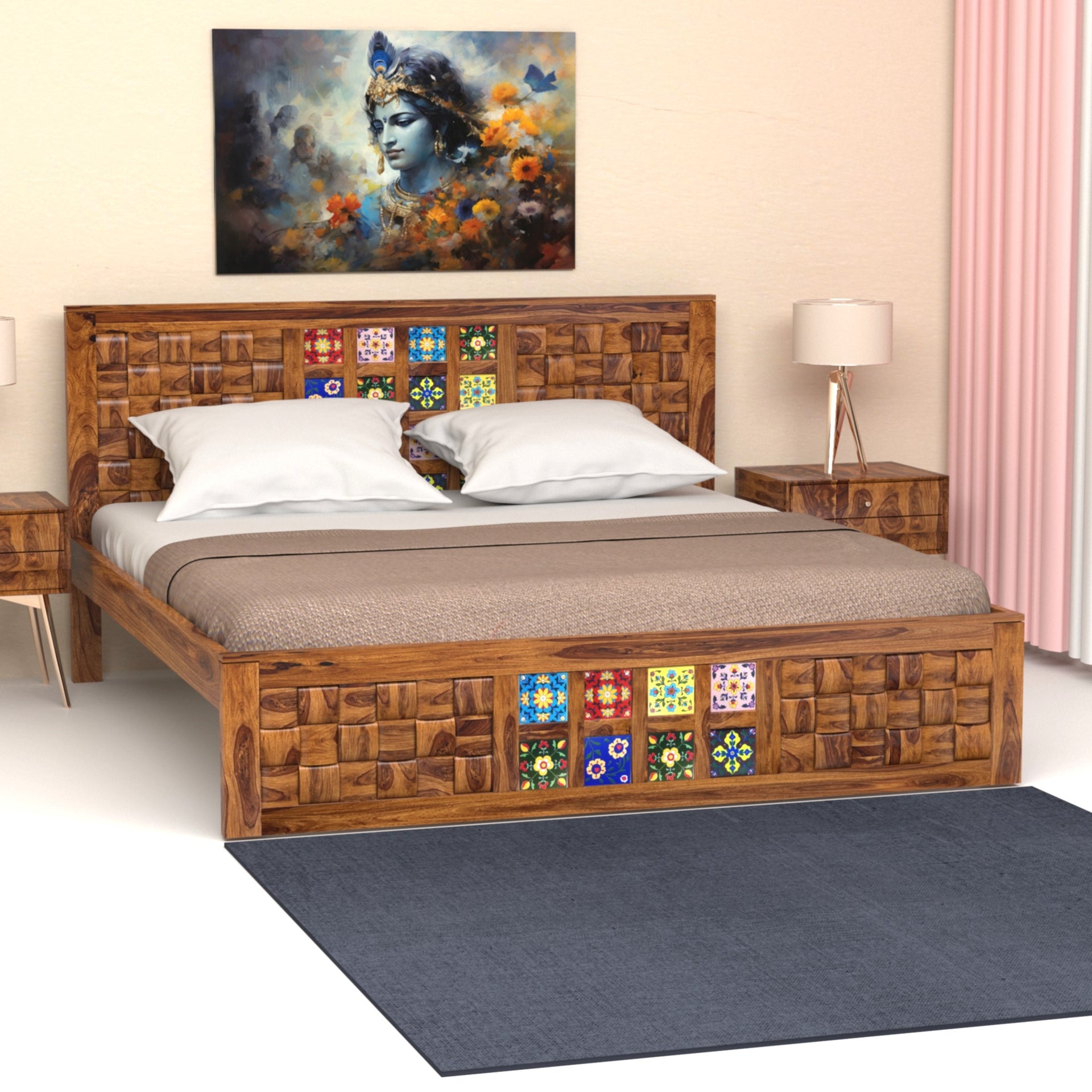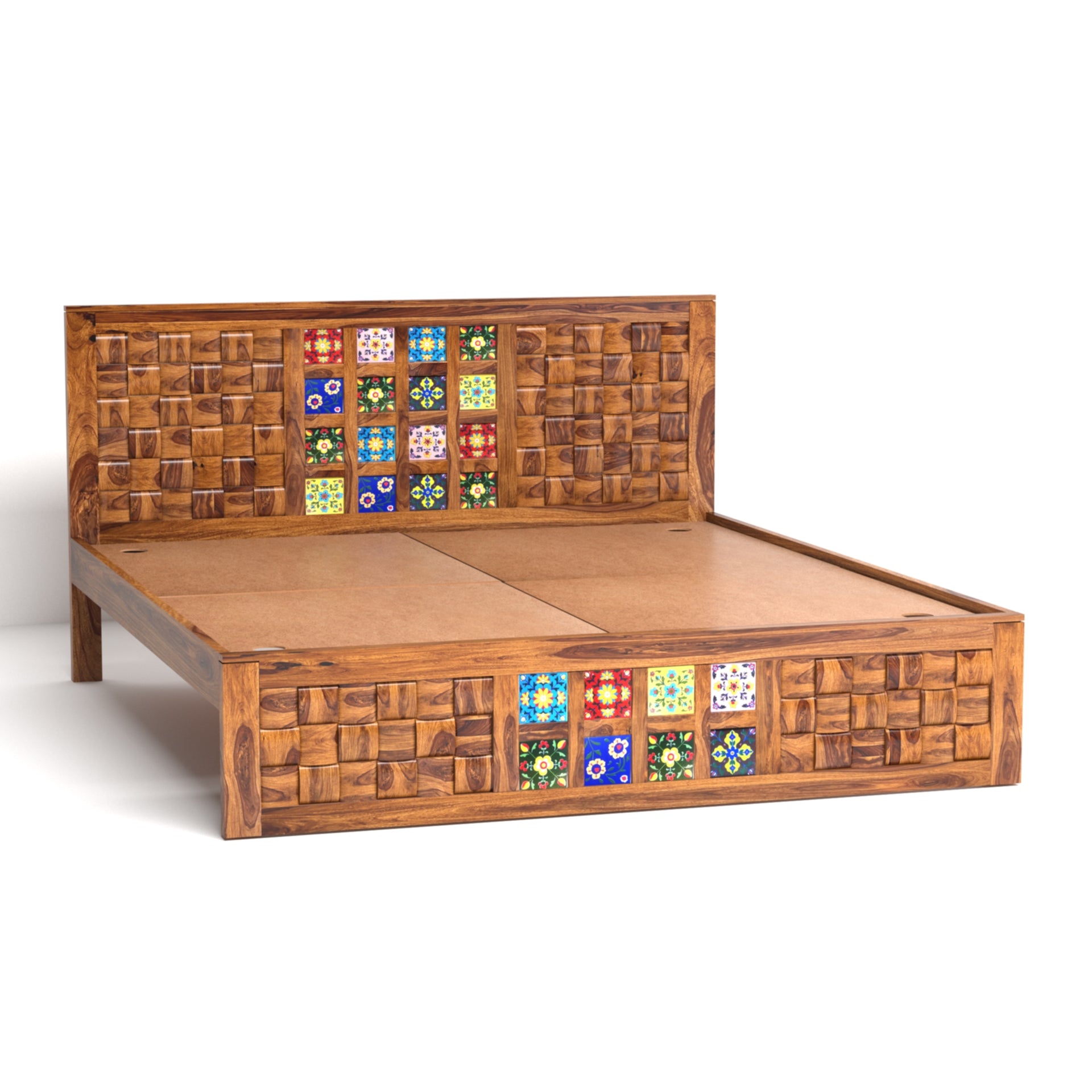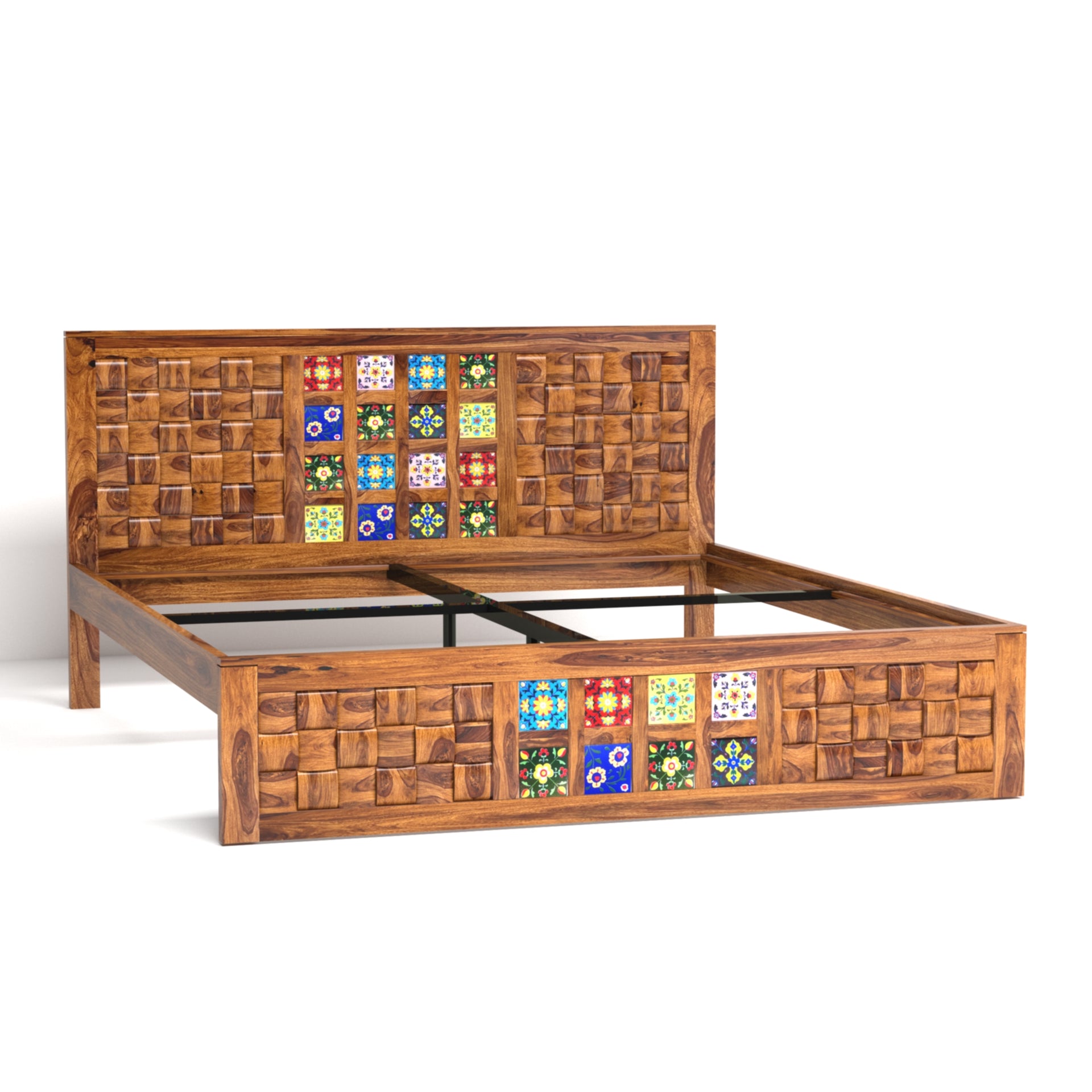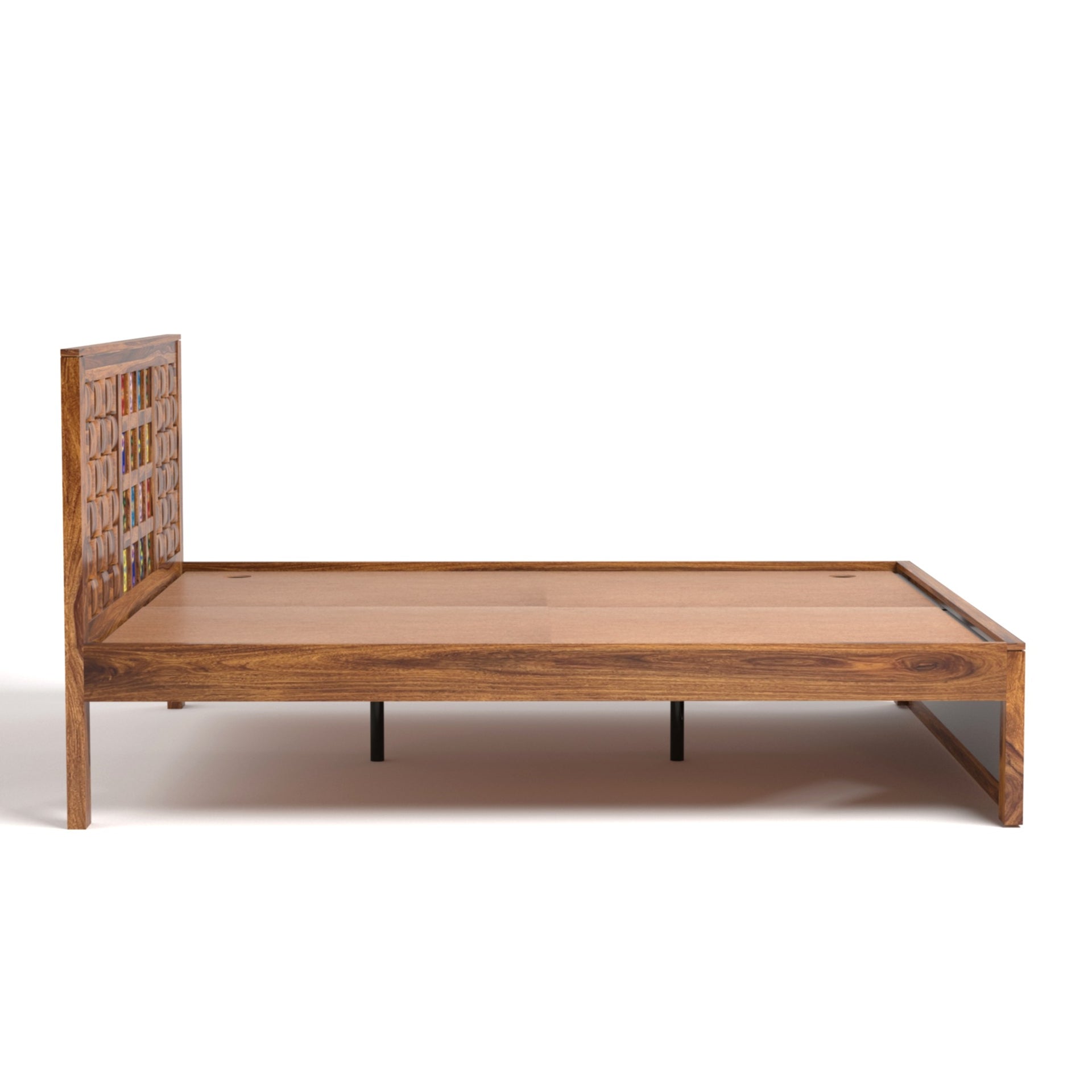 Amber Sheesham Wood King Size Bed in Honey Finish