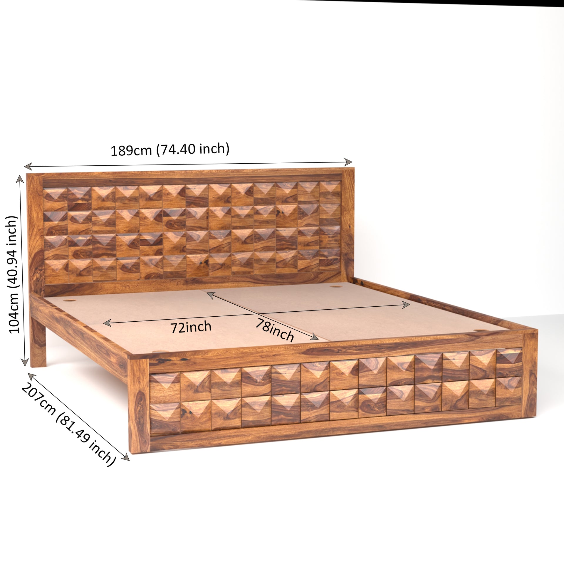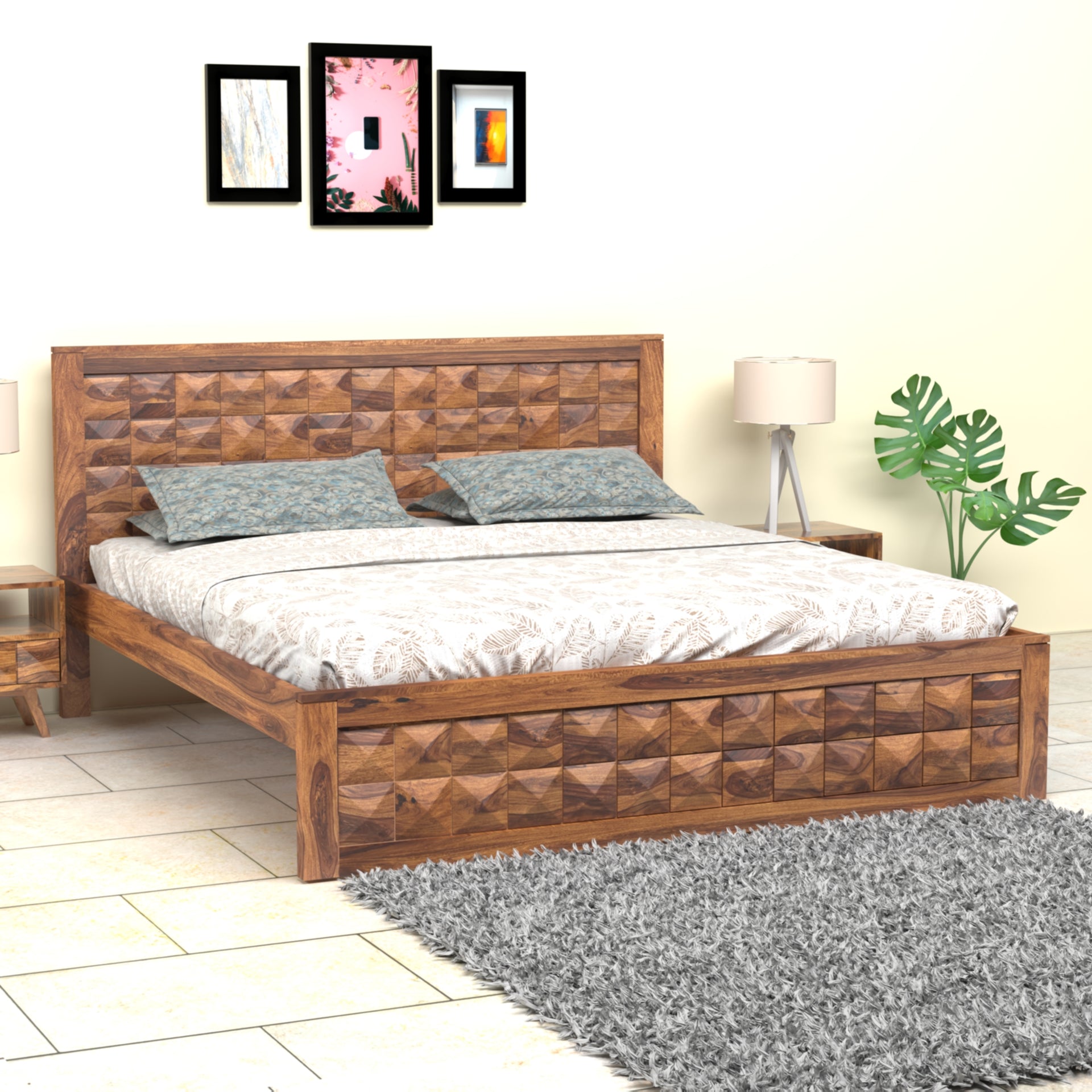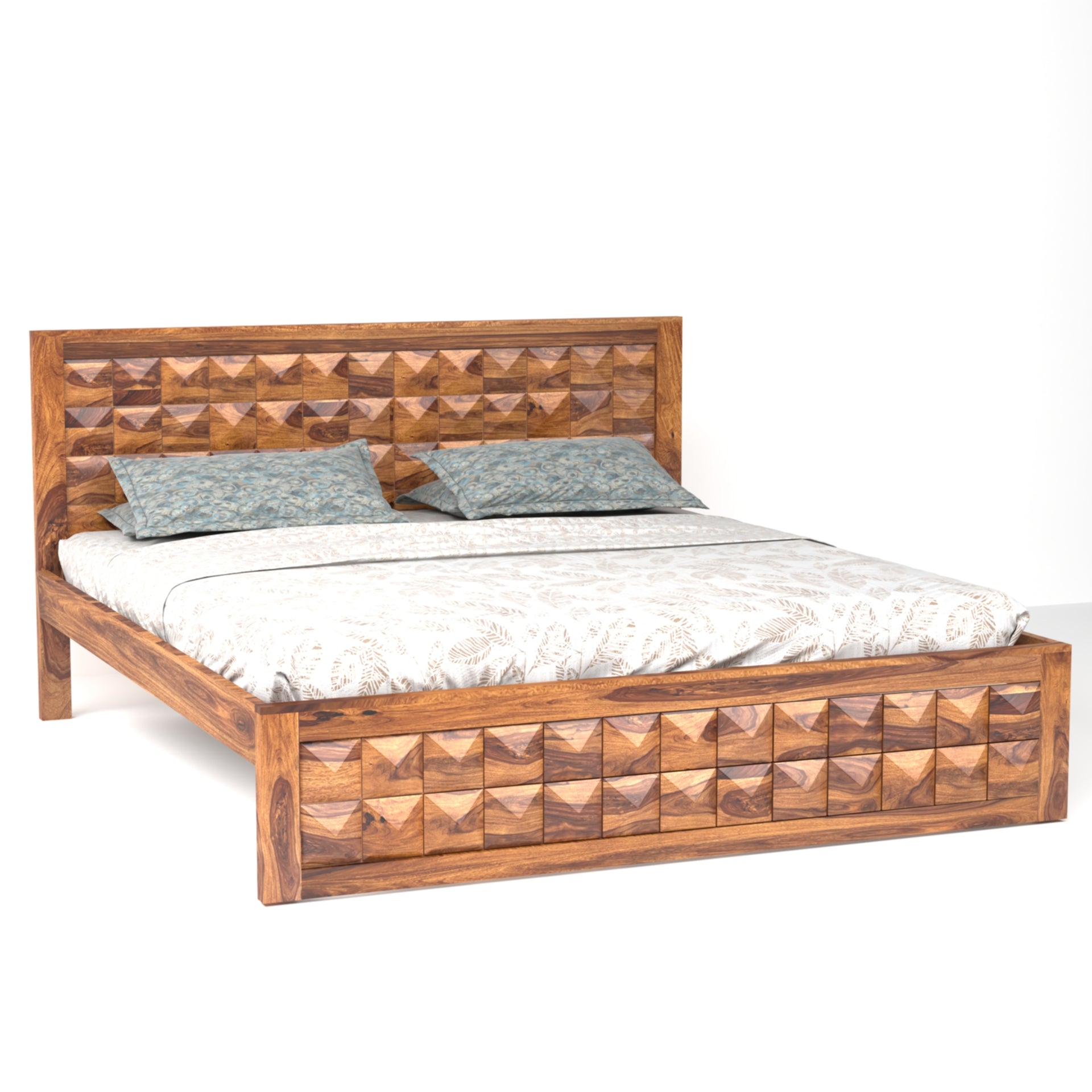 Diamond Sheesham Wood King Size Bed in Honey Finish