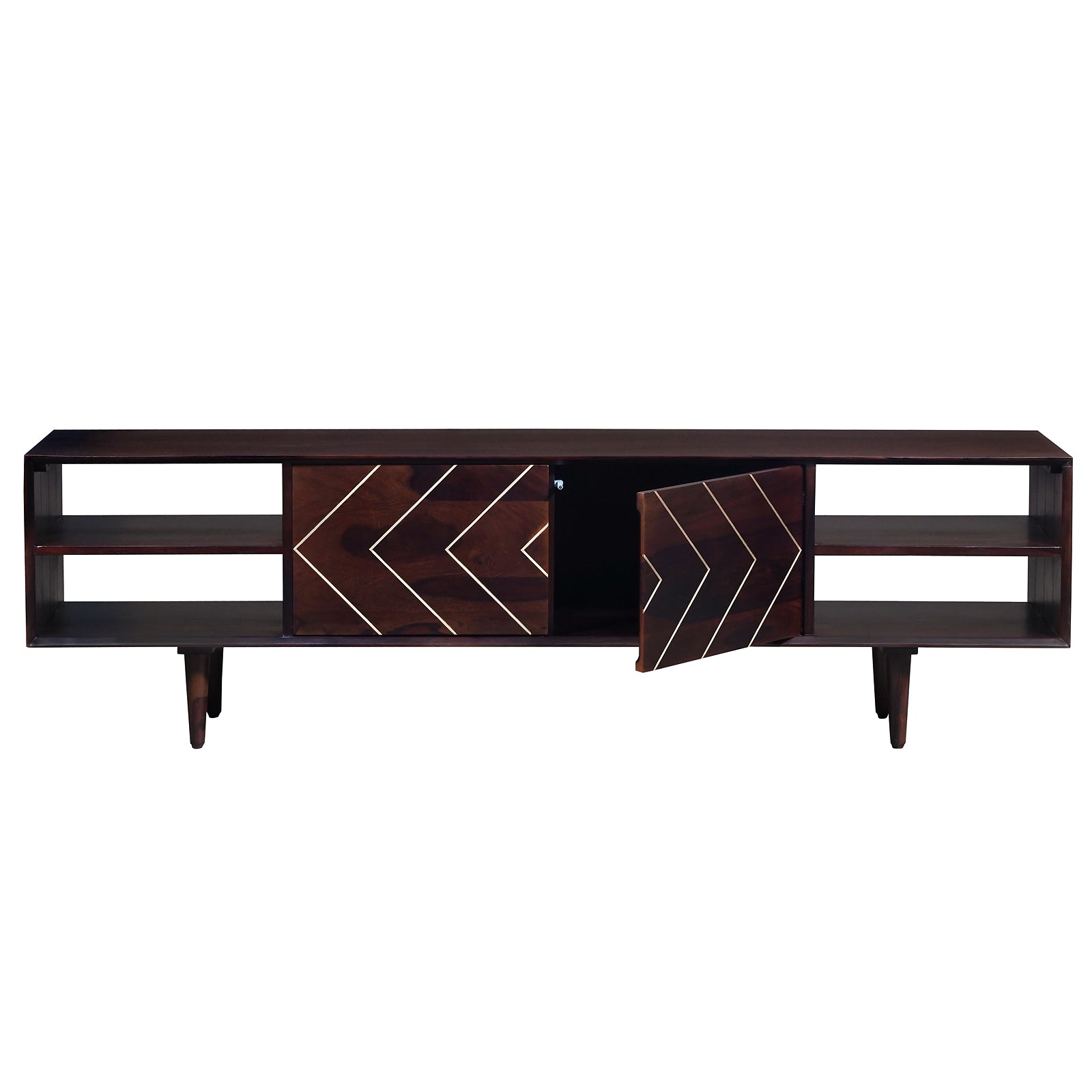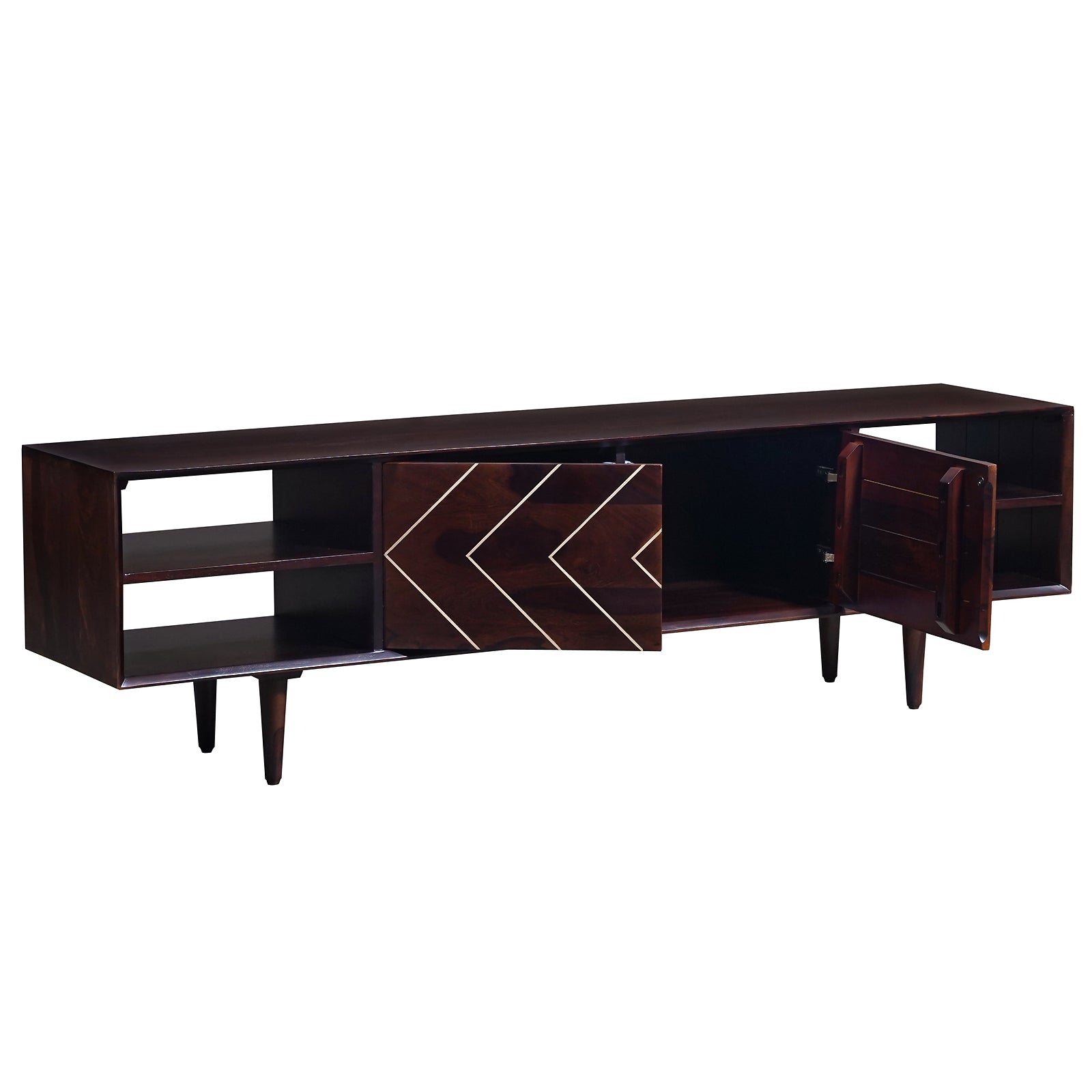 Elevate your living room with the timeless charm of the Bristol TV Stand from Woodpeel. Expertly handcrafted from premium Sheesham wood, this unit combines natural beauty with modern functionality. The elegant brass inlay work on the front doors adds a touch of sophistication, creating a stunning focal point for your entertainment space.