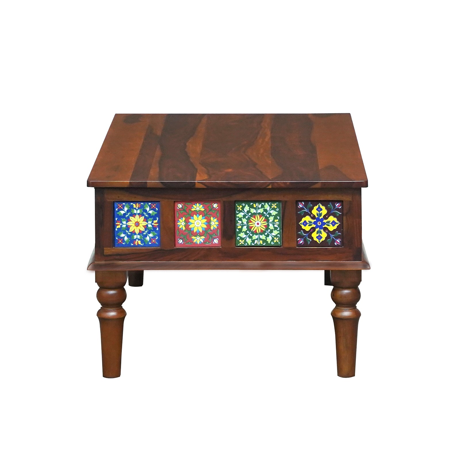 Amber Coffee Table in Honey Finish – Sheesham Wood with Multicolor Ceramic Tile