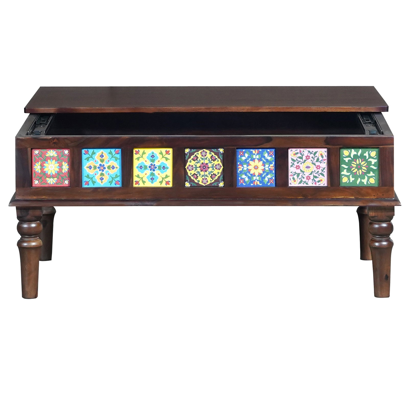 Amber Coffee Table in Walnut Finish – Sheesham Wood with Multicolor Ceramic Tile