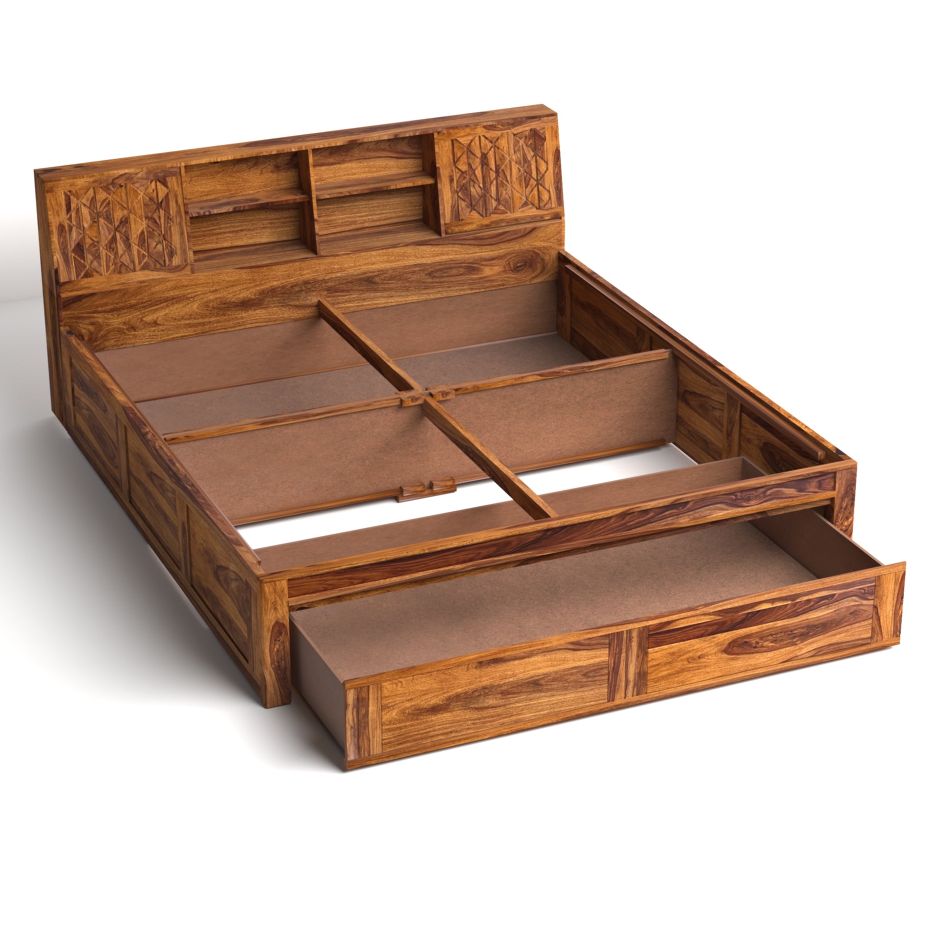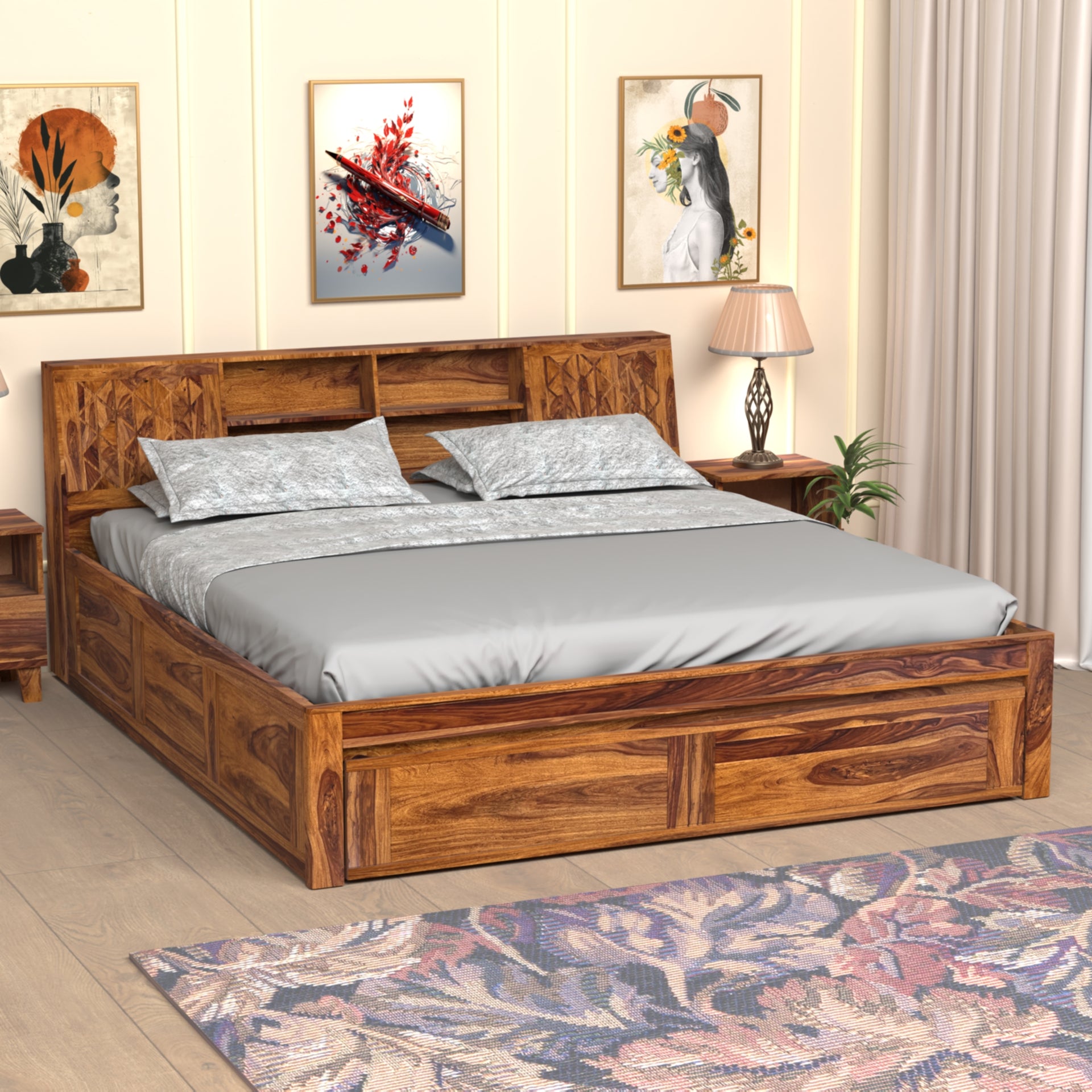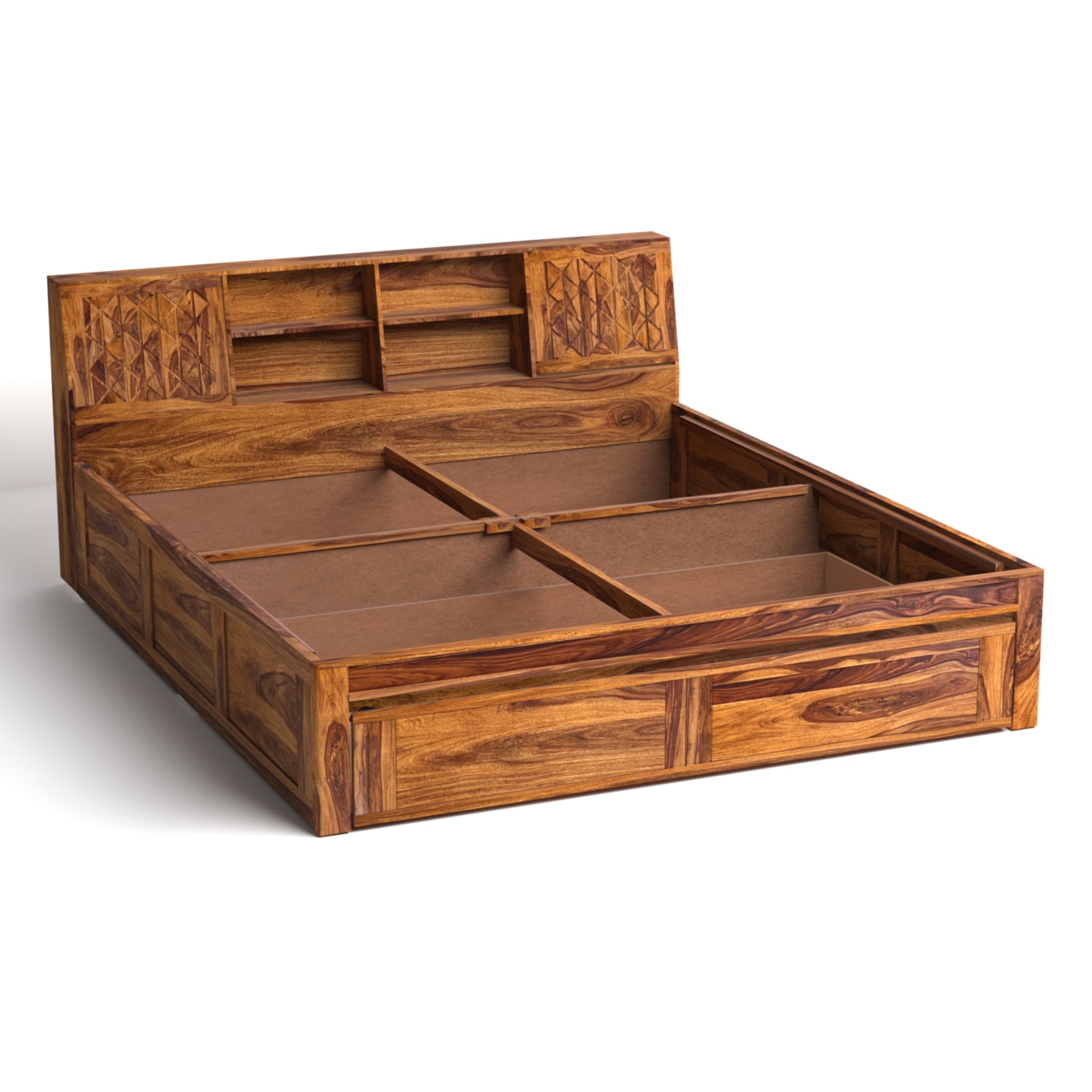 Bergen Sheesham Wood King Size Bed with Storage in Honey Finish