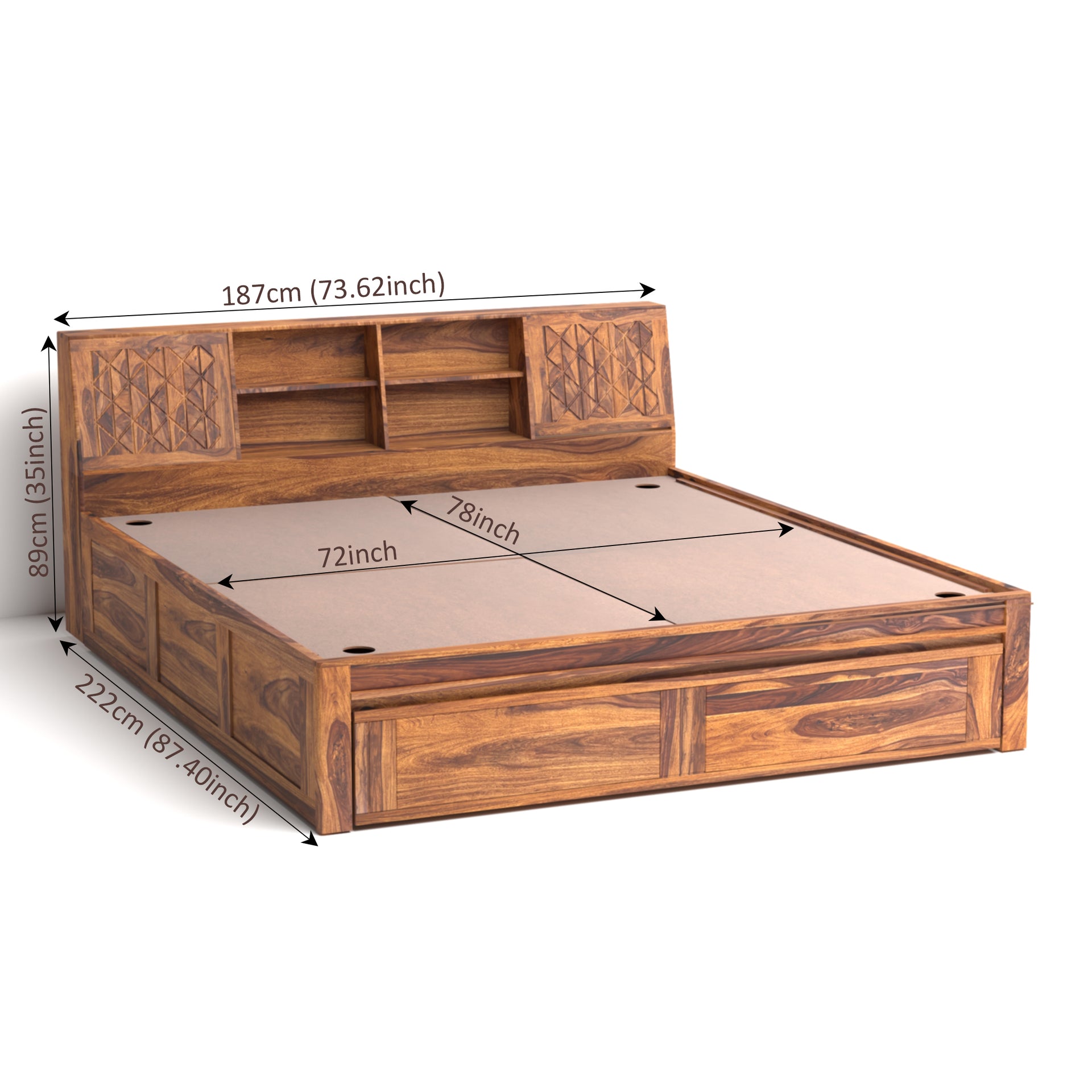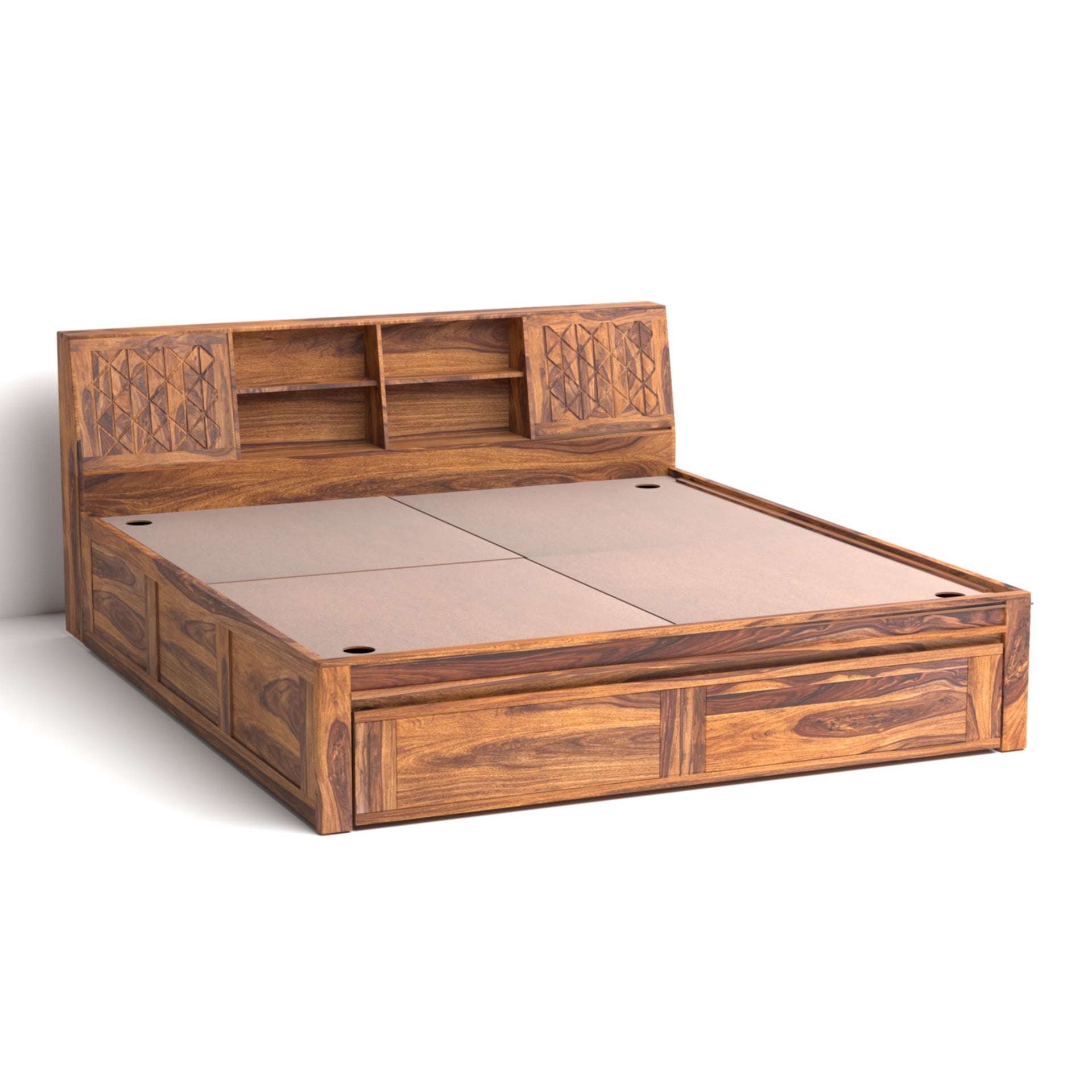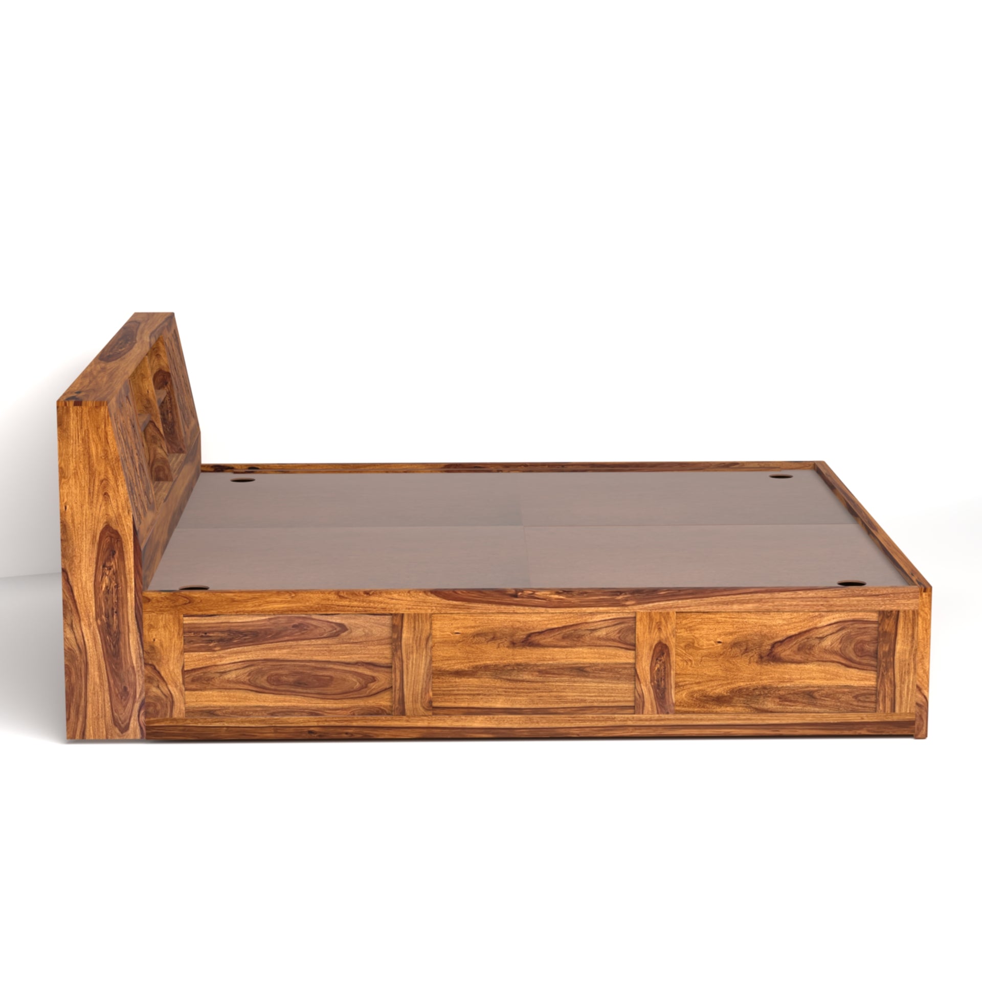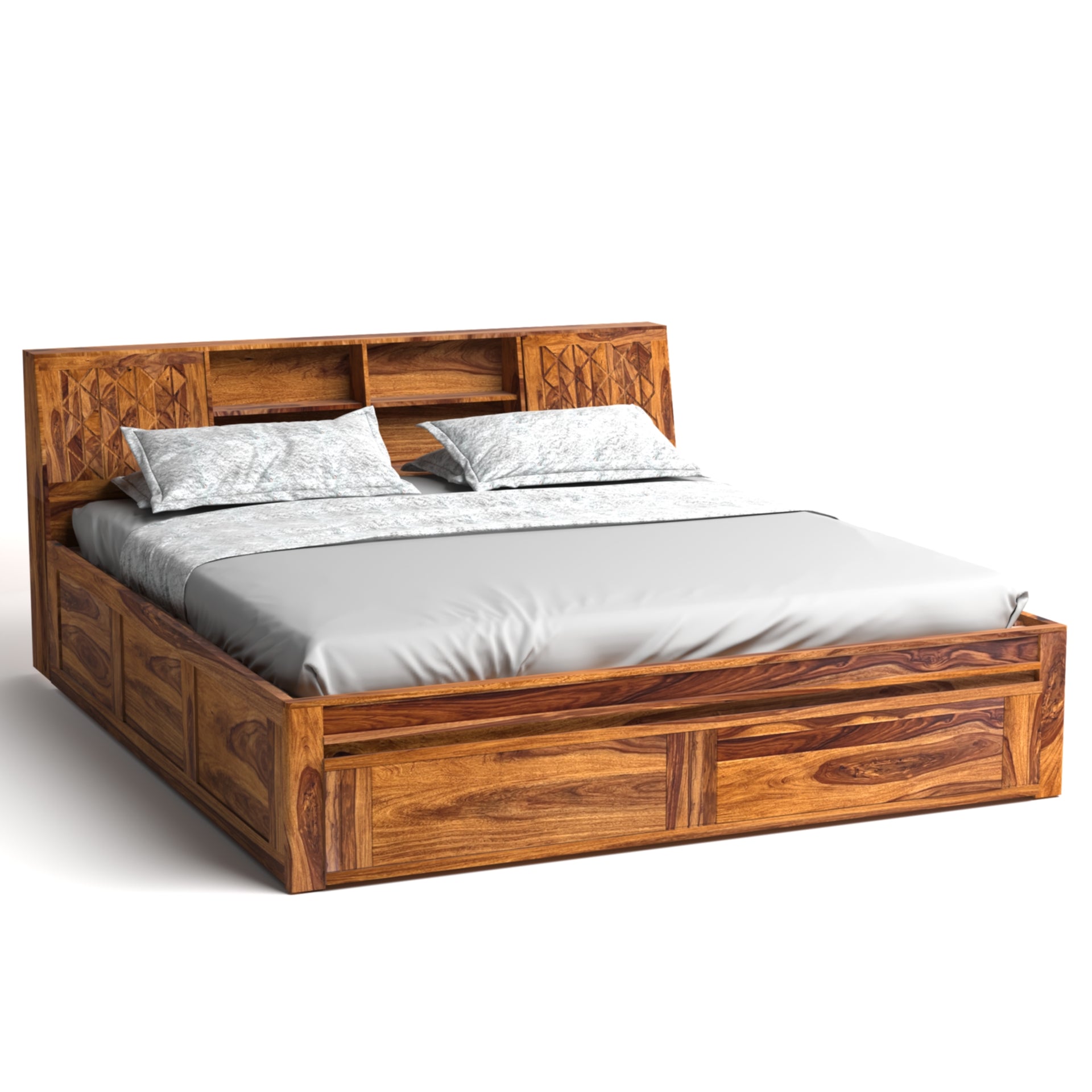 Bergen Sheesham Wood King Size Bed with Storage in Honey Finish