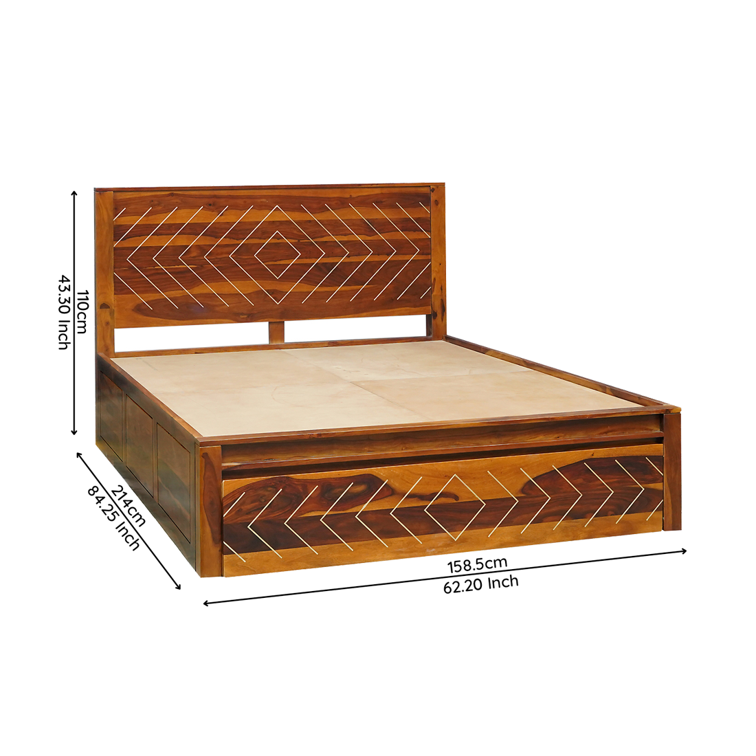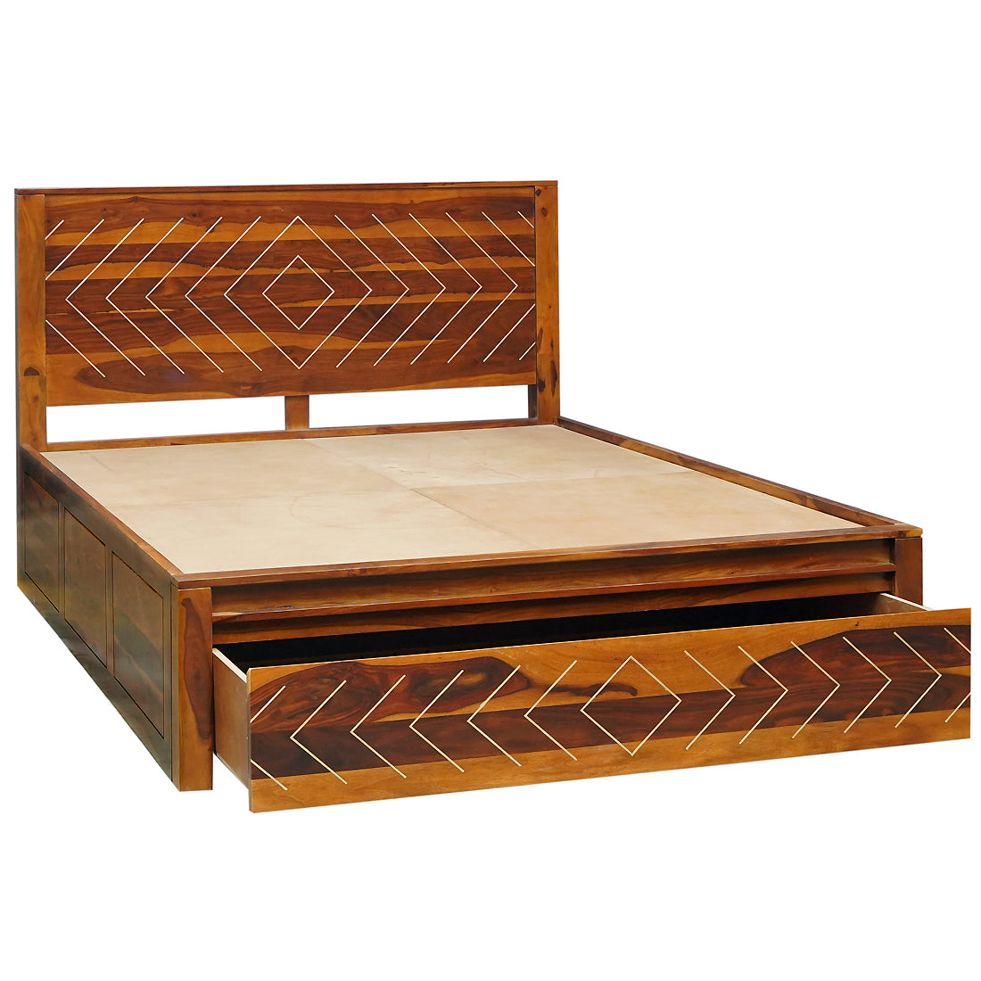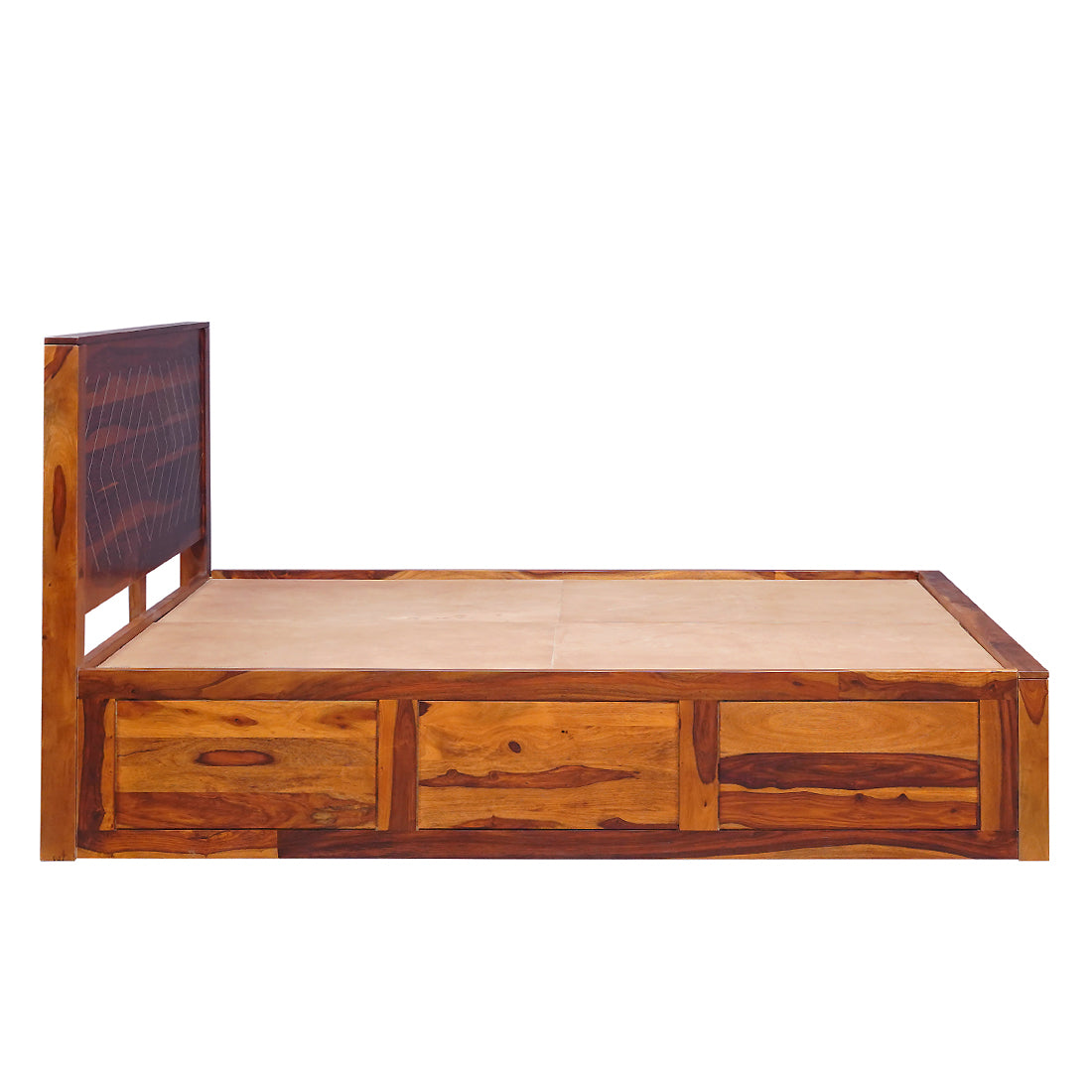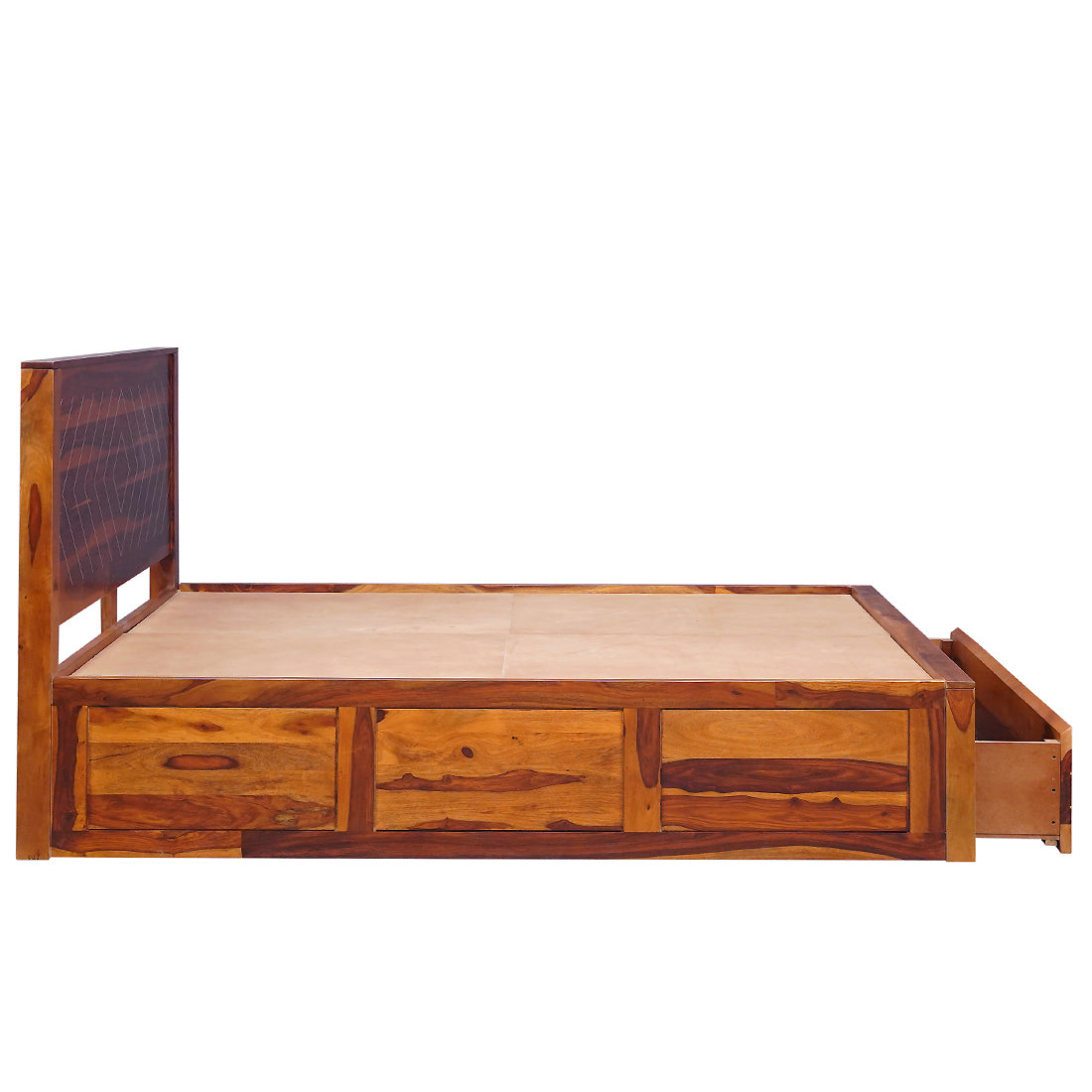 Bristol Sheesham Wood Queen Size Bed with Drawer Storage in Honey Finish