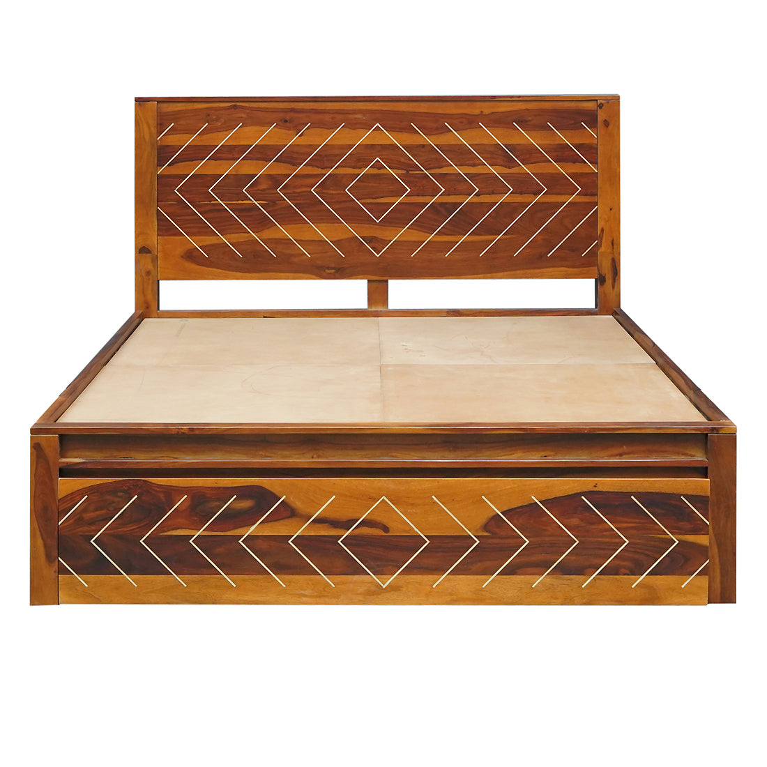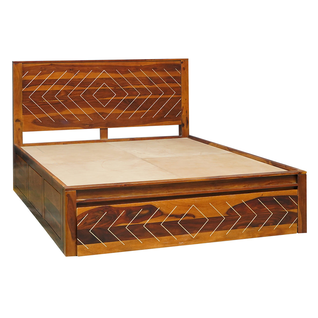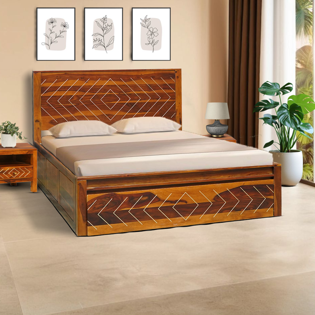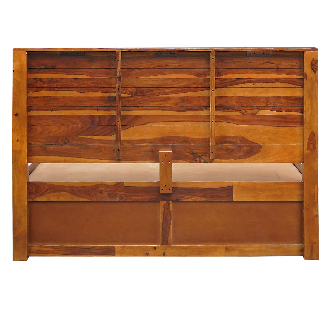 Bristol Sheesham Wood Queen Size Bed with Drawer Storage in Honey Finish