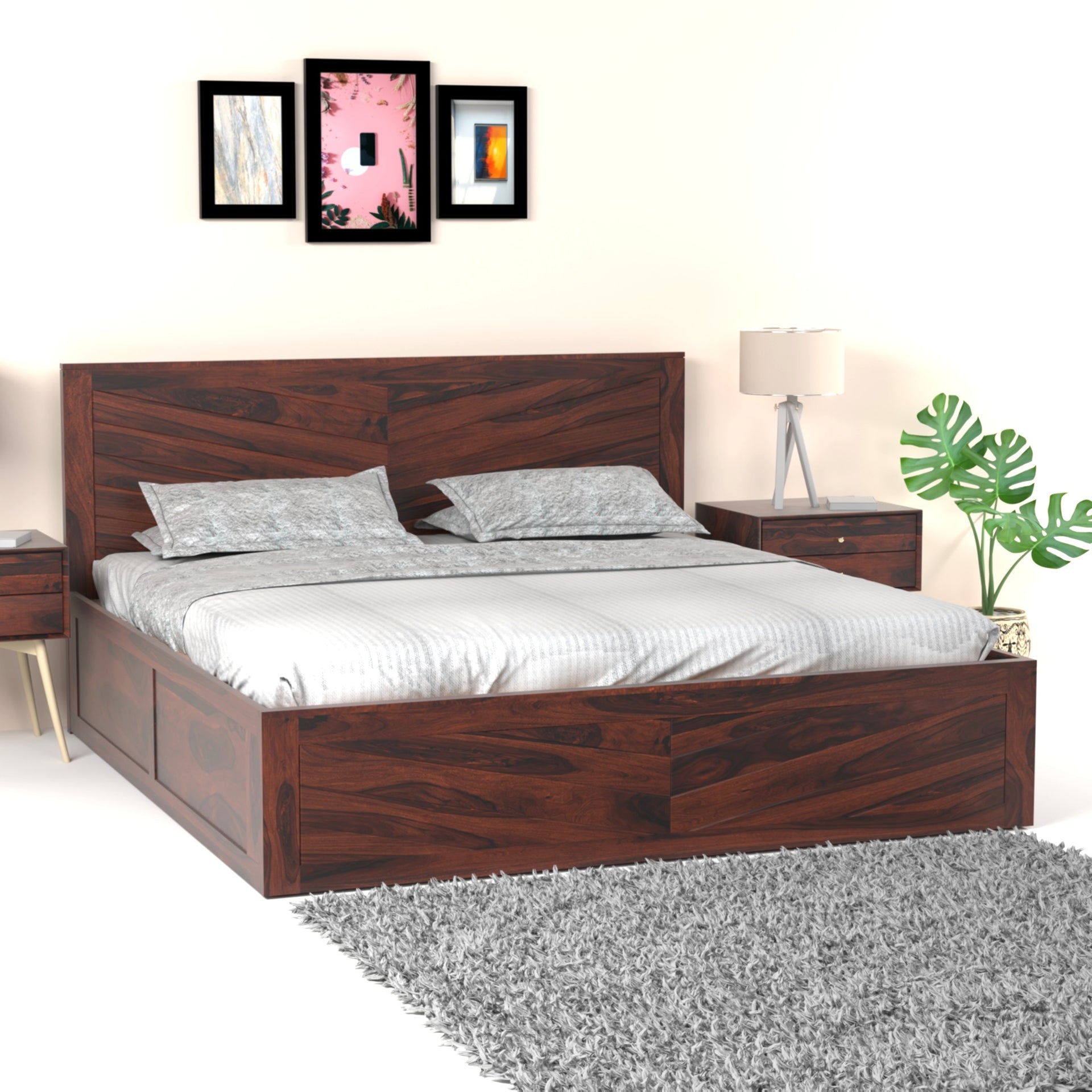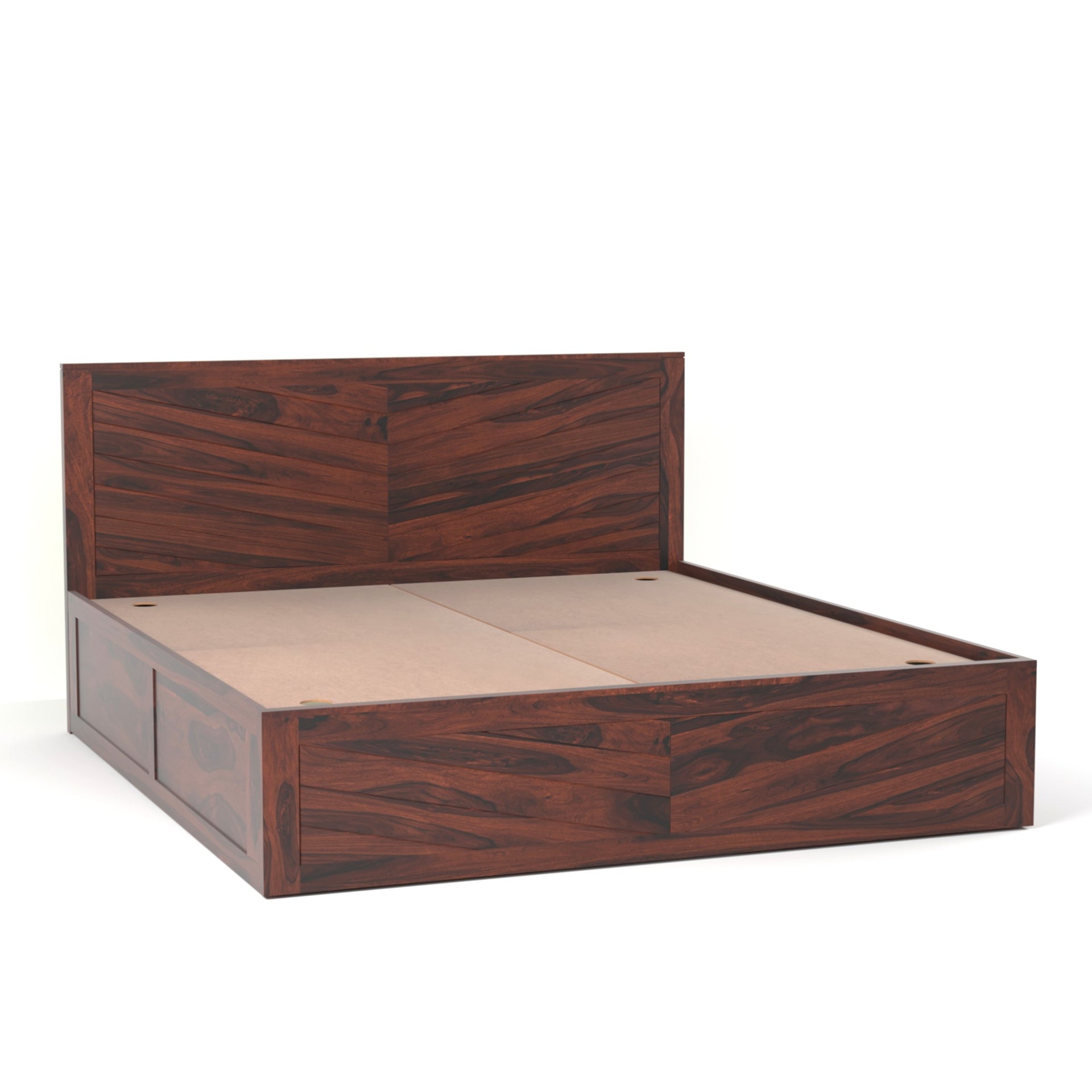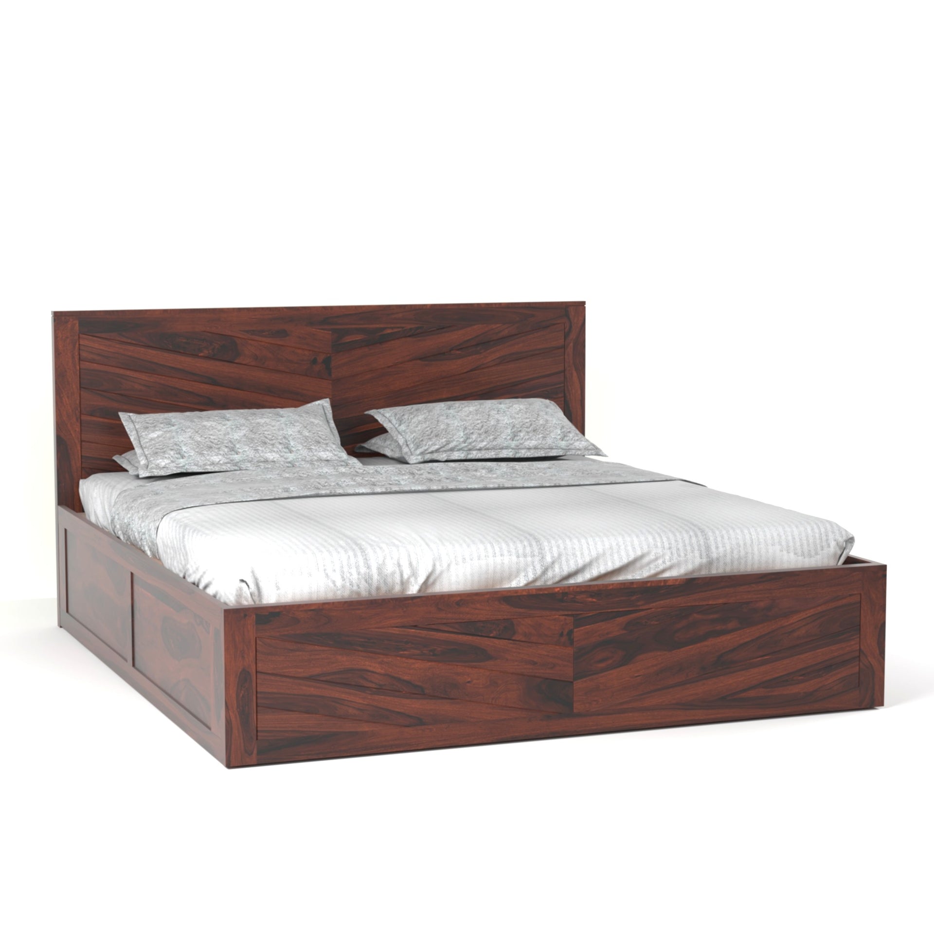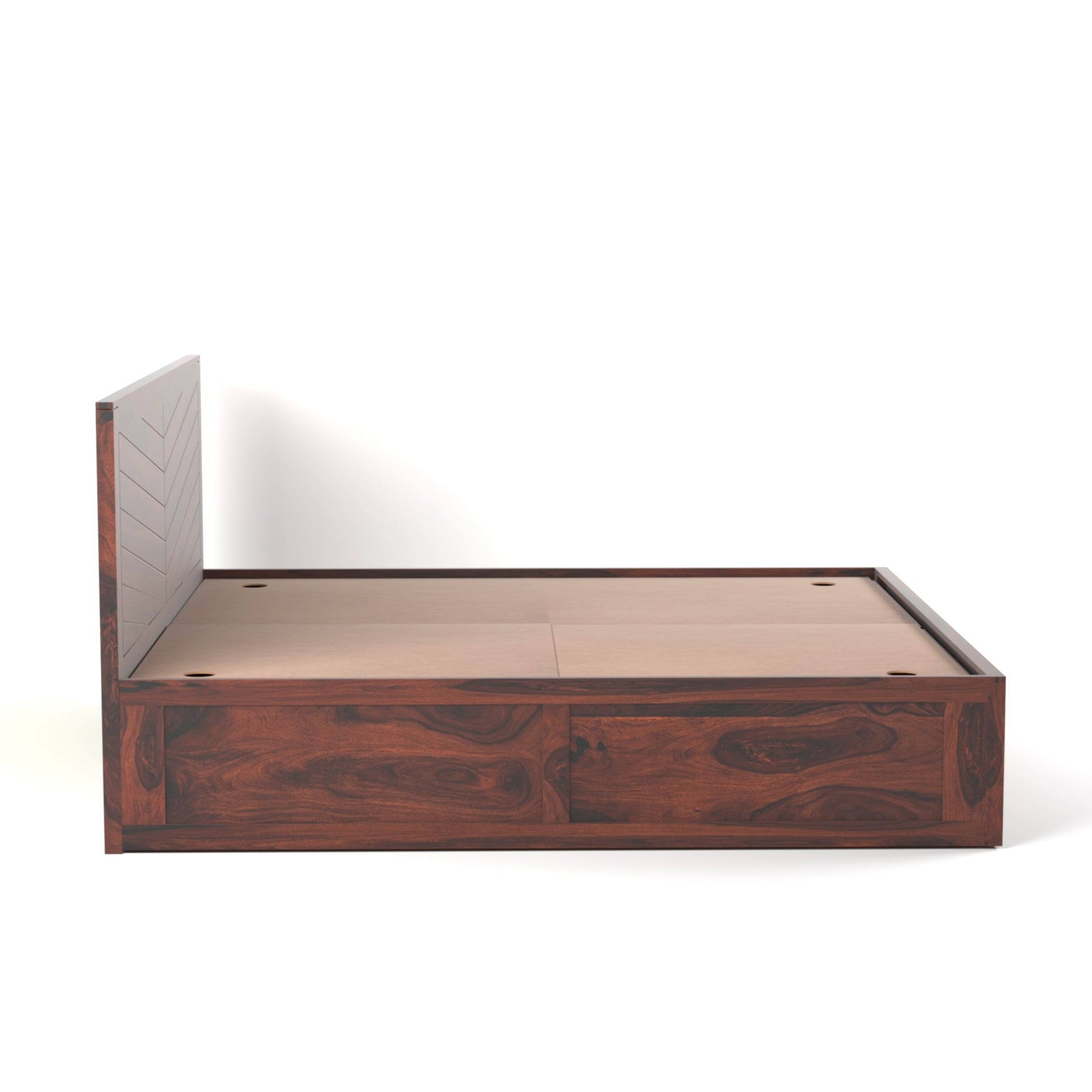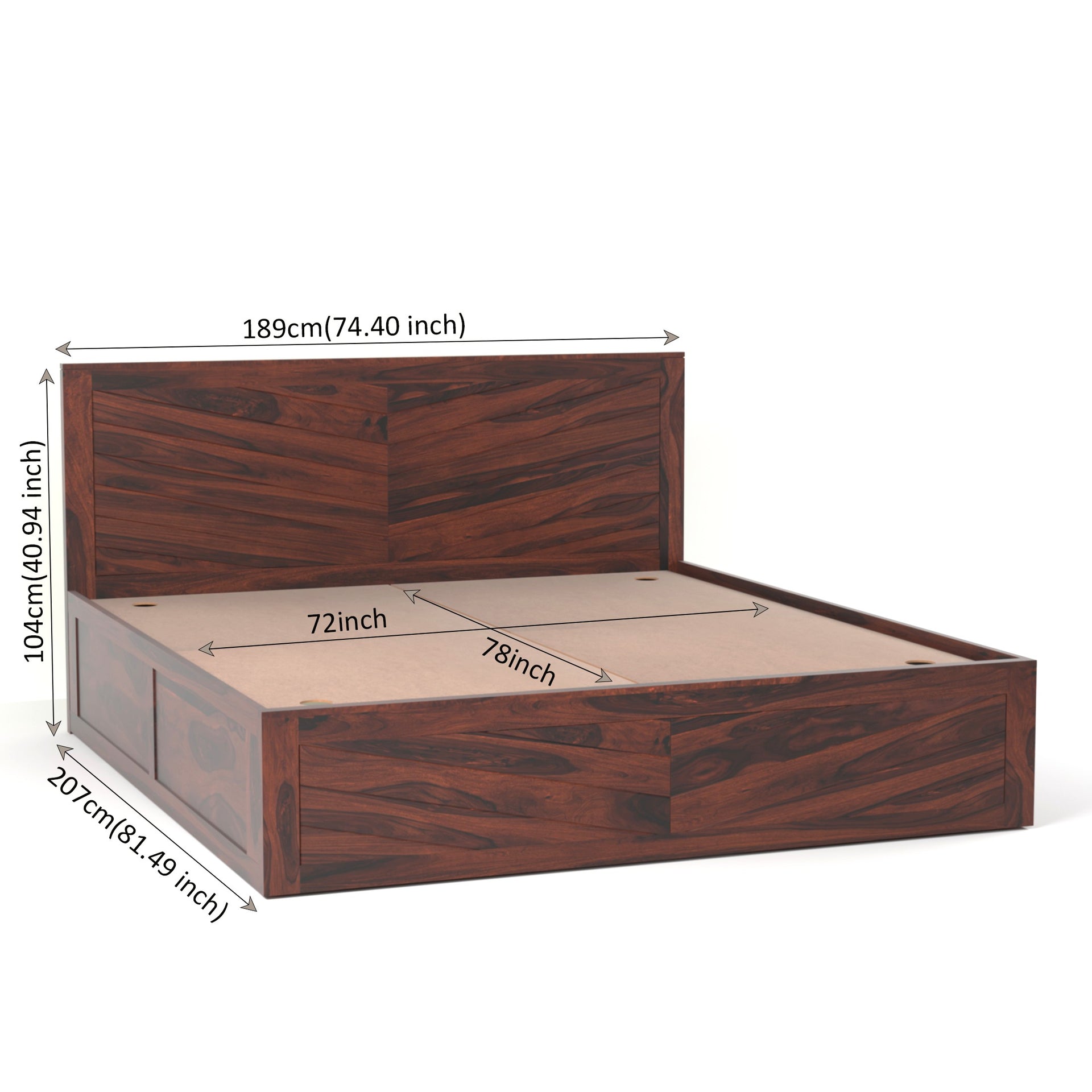 Maximize both style and functionality with the Chevron Sheesham Wood King Size Bed with Box Storage. Crafted from kiln-dried and chemically treated solid sheesham wood, this bed guarantees exceptional durability and a timeless aesthetic. The stylish design seamlessly integrates into any bedroom, while the king-size dimensions, accommodating a 72x78 inch mattress, provide luxurious comfort. What sets this bed apart is its ample box storage, offering a convenient solution for keeping your bedroom organized and clutter-free. Easily store bedding, pillows, or other essentials within the spacious compartments beneath the mattress. Enjoy the perfect blend of beauty, strength, and practicality with the Chevron Sheesham Wood King Size Bed with Box Storage.