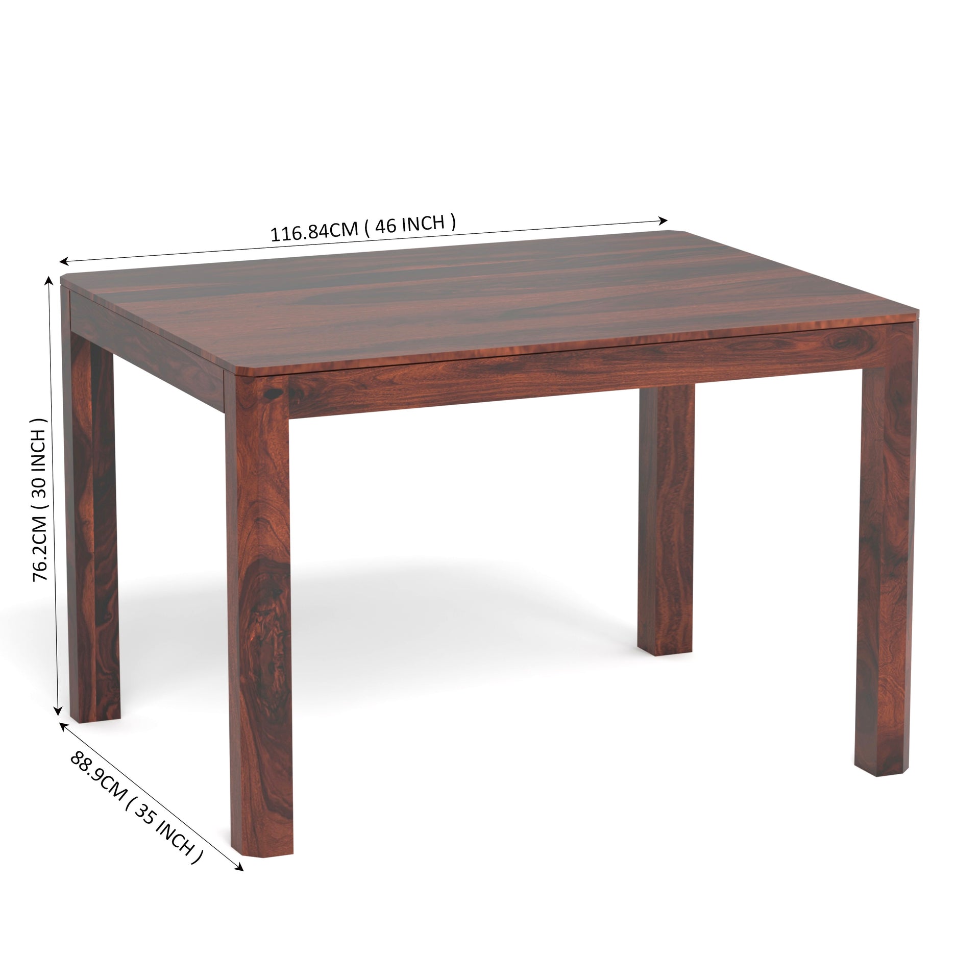 Enhance your dining area with the sophisticated charm of the Ruby 4S Dining Table. Skillfully constructed from robust, kiln-dried solid sheesham wood, this table promises exceptional sturdiness and long-lasting durability. The rich rosewood finish deepens the natural beauty of the wood grain, adding a touch of warmth and elegance to your home.