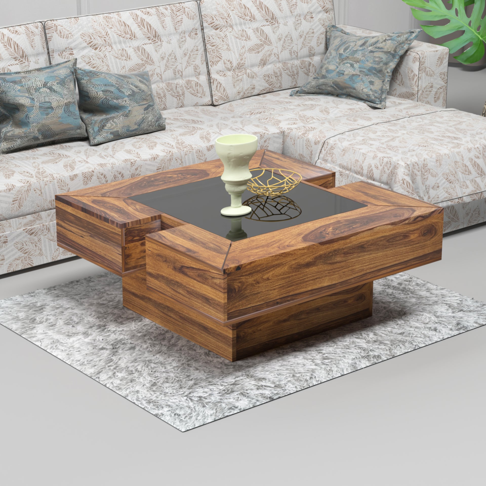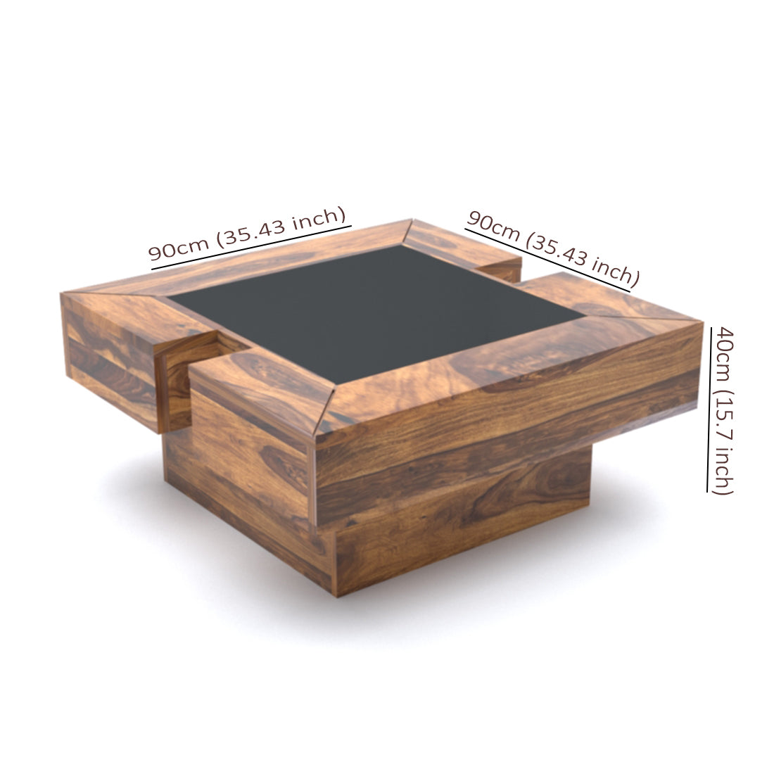 Seattle Sheesham Wood Square Coffee Table is constructed from chemically treated & seasoned in kiln Indian rosewood a.k.a. sheesham wood. Sheesham wood is extremely durable, resists dry-wood termites & natural wood decay. It also does not wrap or split, making it perfect for long lasting option. The wood naturally has rich hues that range from golden brown to dark reddish brown, giving each piece of furniture a distinctive and unique look. This table can be used in lounge area, living-cubicle, waiting lobby, reception area etc. Because of its spacious square tabletop, you can enjoy a delightful tea time with your family or entertain friends with refreshment at home with ease. The 90x90 wooden table top with an 8mm thick tempered glass in the center complement each other.