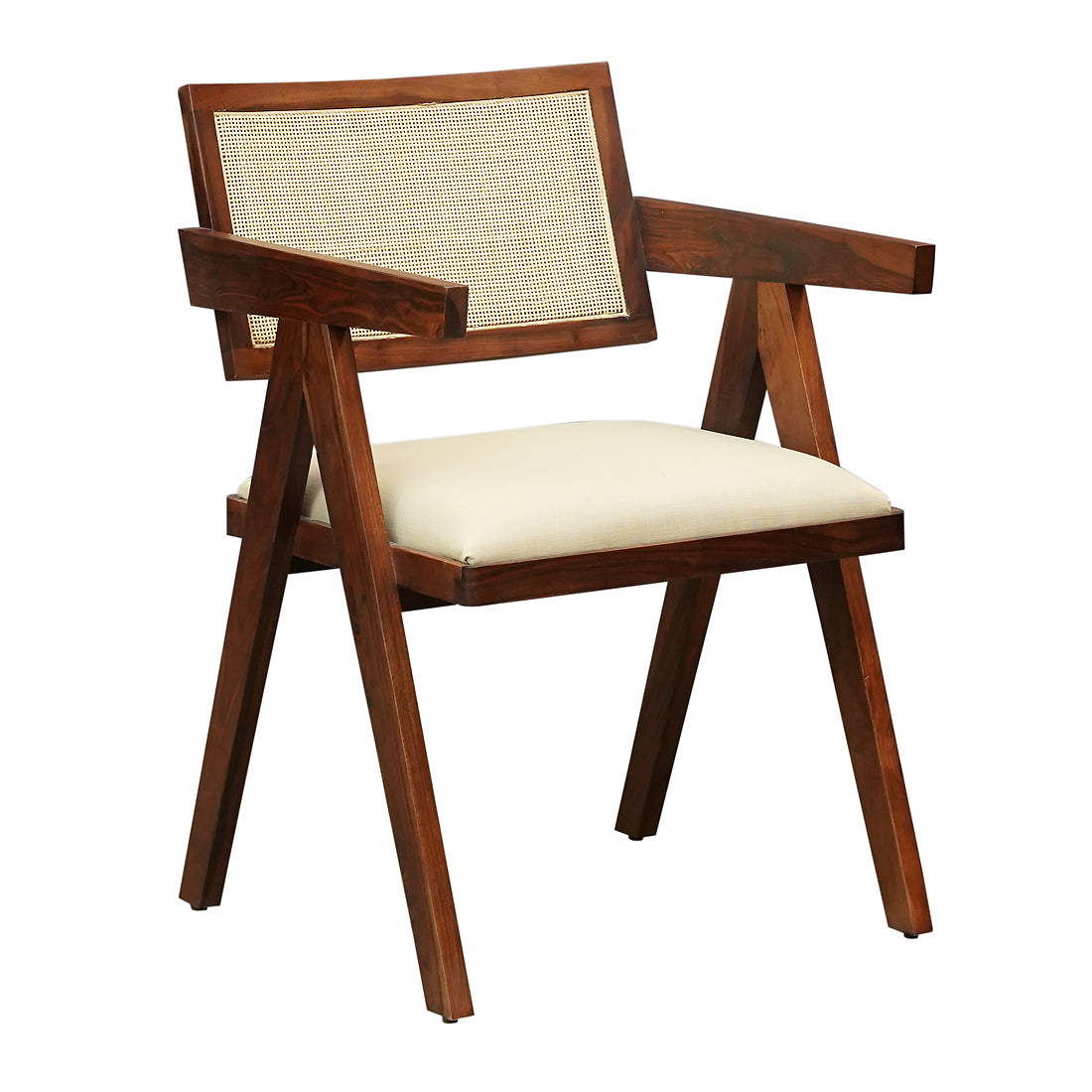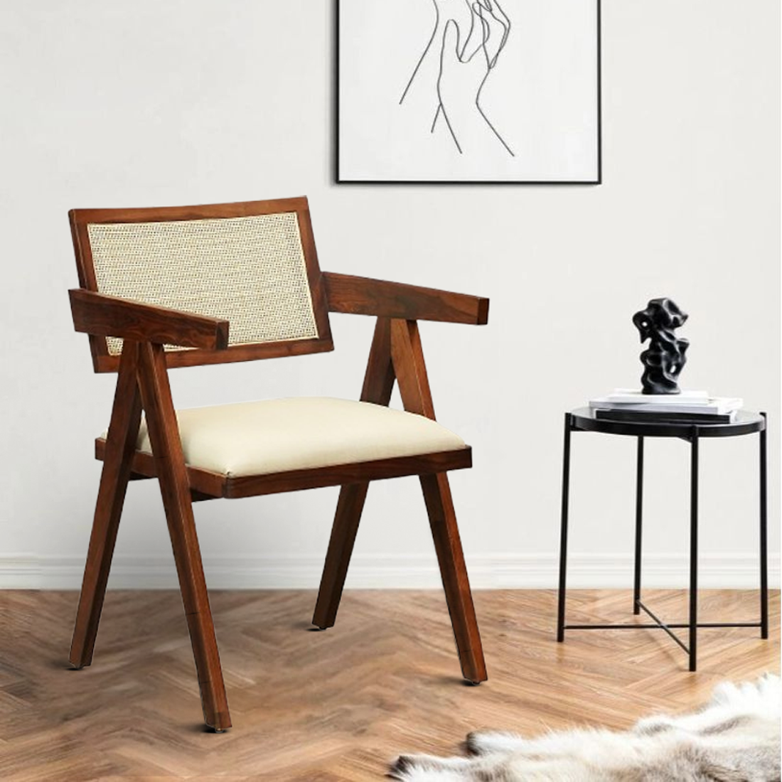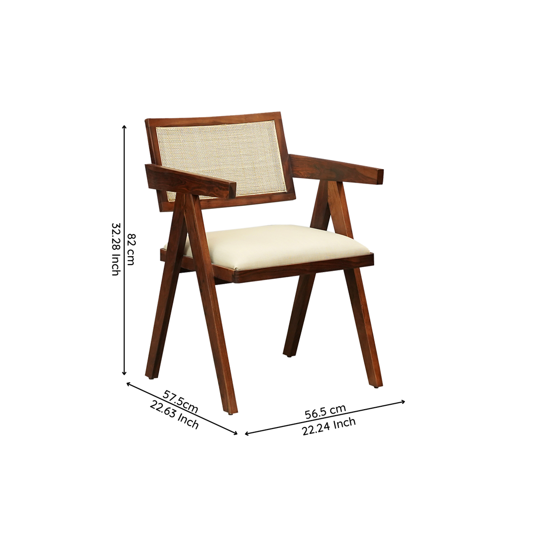The Zester Arm Chair brings a perfect blend of style, comfort, and durability to your home. Designed with a plush cushioned seat, it ensures hours of relaxation, whether you're enjoying a quiet moment or entertaining guests. The natural cane backrest adds a sophisticated touch, offering not just a unique design but also exceptional breathability.